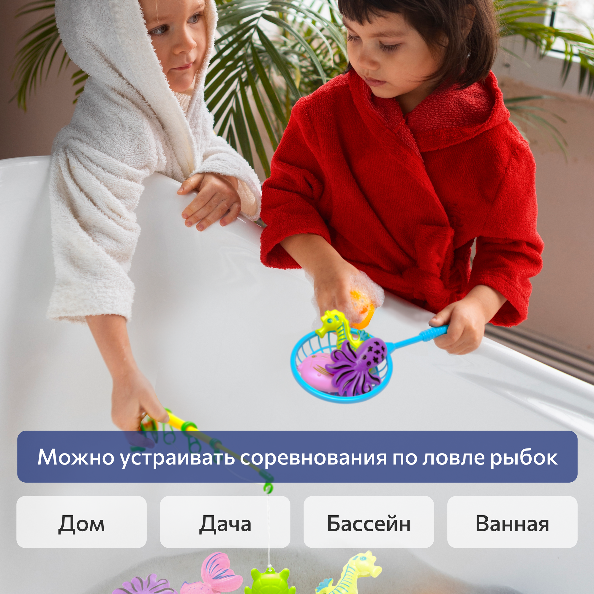 Купить Набор игрушек для купания Fullbuy 35 предметов для детей, мальчиков и девочек, детская магнитная рыбалка для ванной