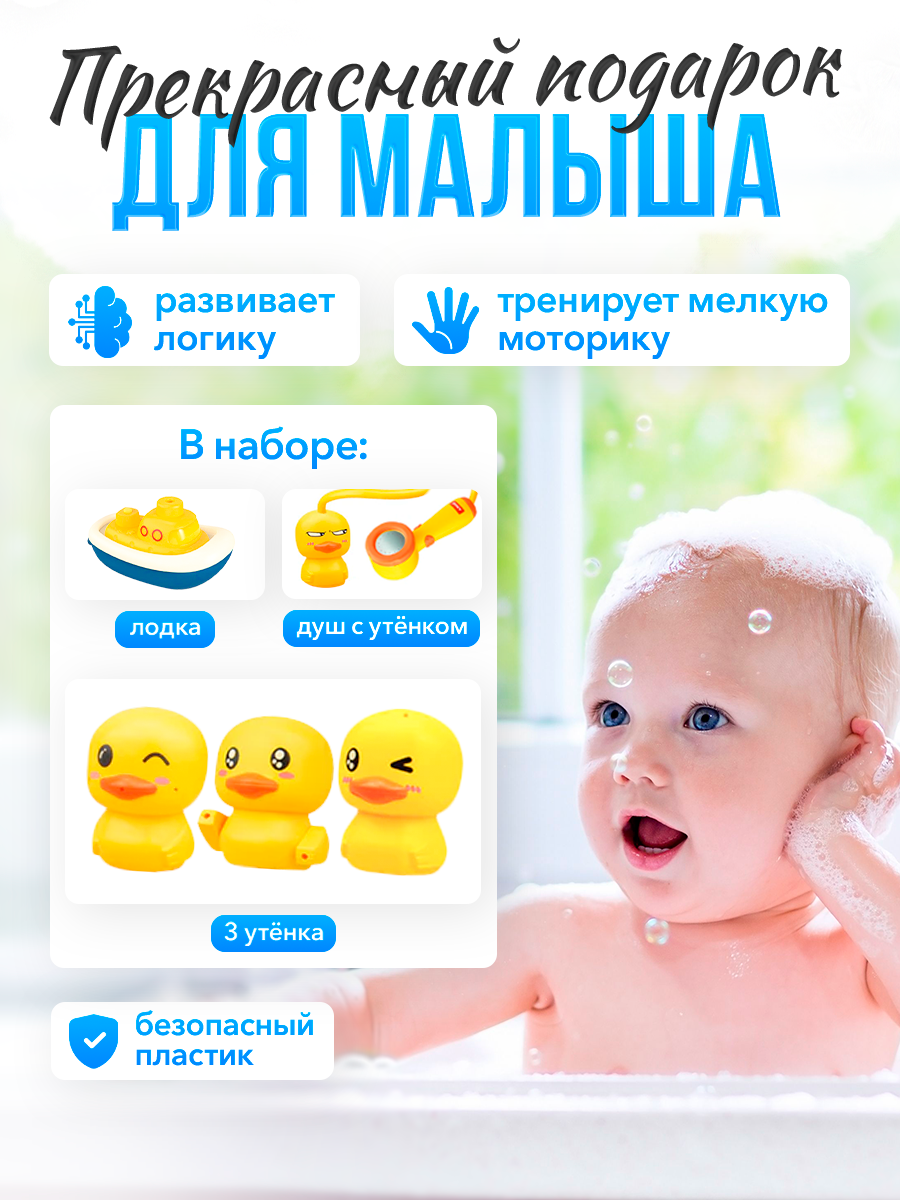 Игрушка для ванной утка, развивающая, интерактивная, детский душ, кораблик интересное:
