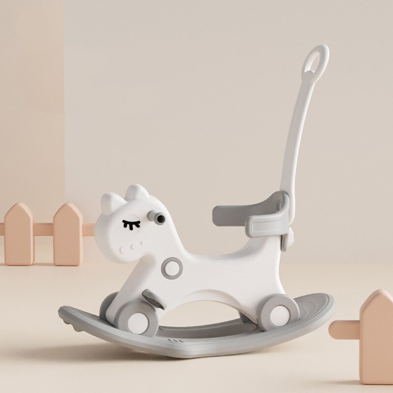 Лошадка-качалка-беговел с ручкой UNIX Kids Grey, для дома и для улицы, от 1 года, 90х85х34 см
