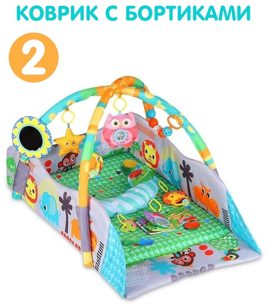 | Комплектация | мягкий коврик трансформер / 2 дуги для игрушек / 3 мягкие игрушки / 3 игрушки-погремушки / 1 безопасное зеркальце / 1 мягкая подушечка |