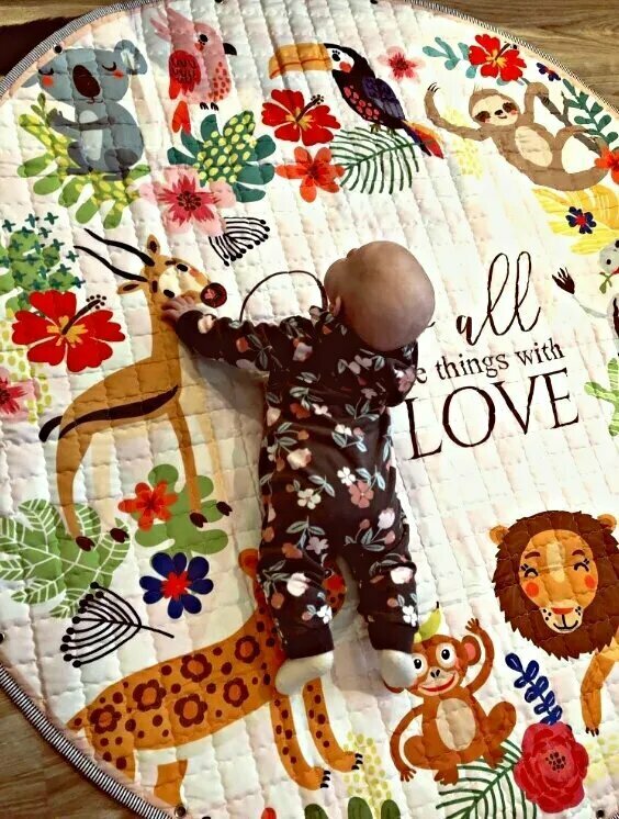 Детский коврик мешочек с нескользящим покрытием "Зверята" диаметр 150 см