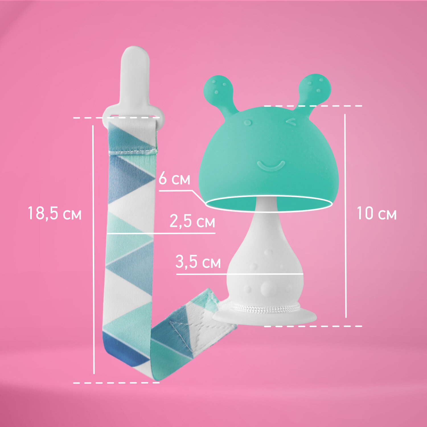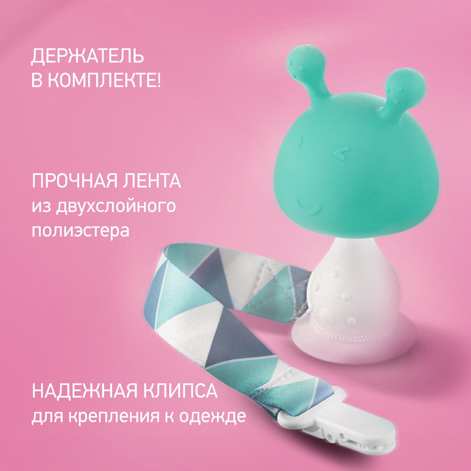 Силиконовый прорезыватель "Грибочек" с держателем, в футляре, цвет розовый