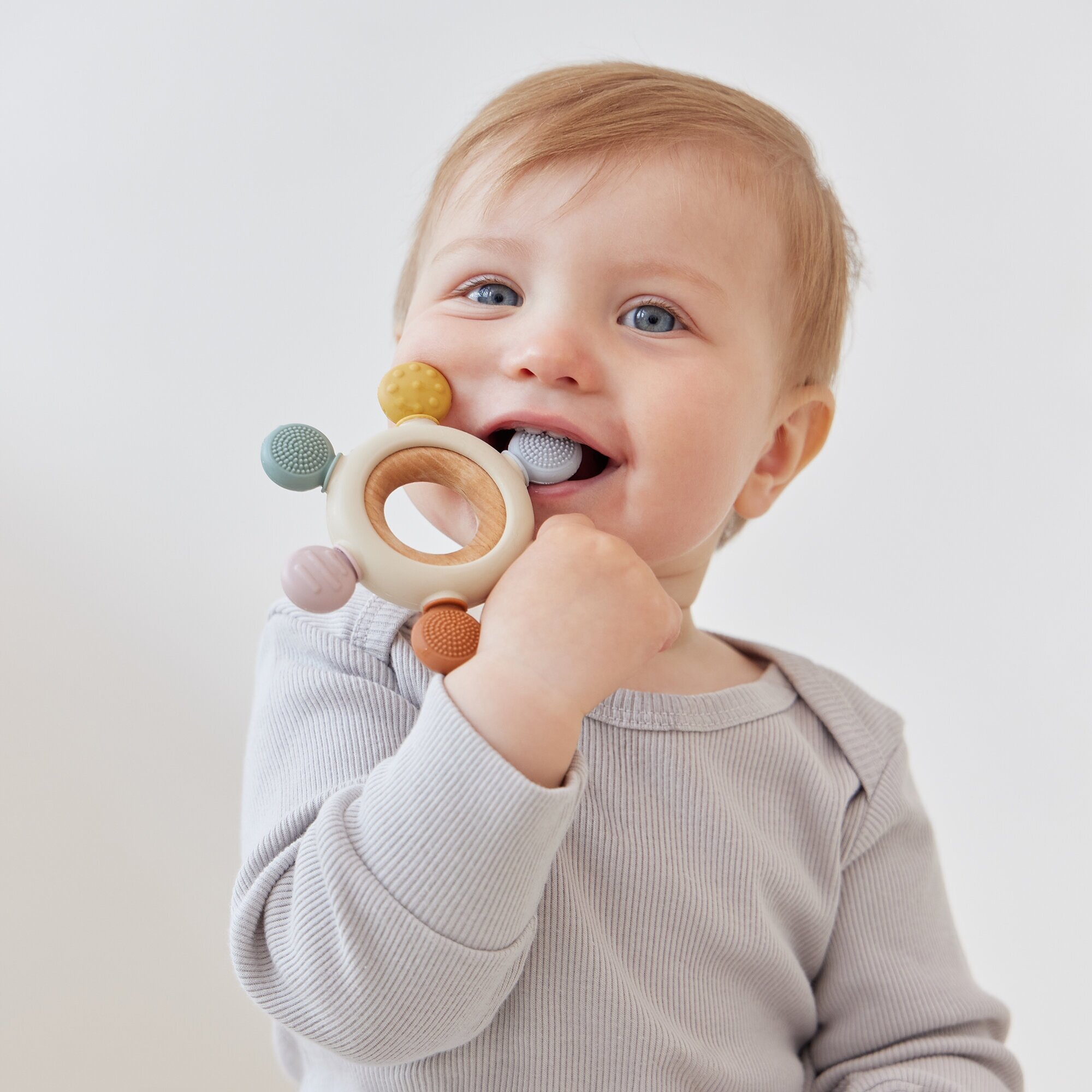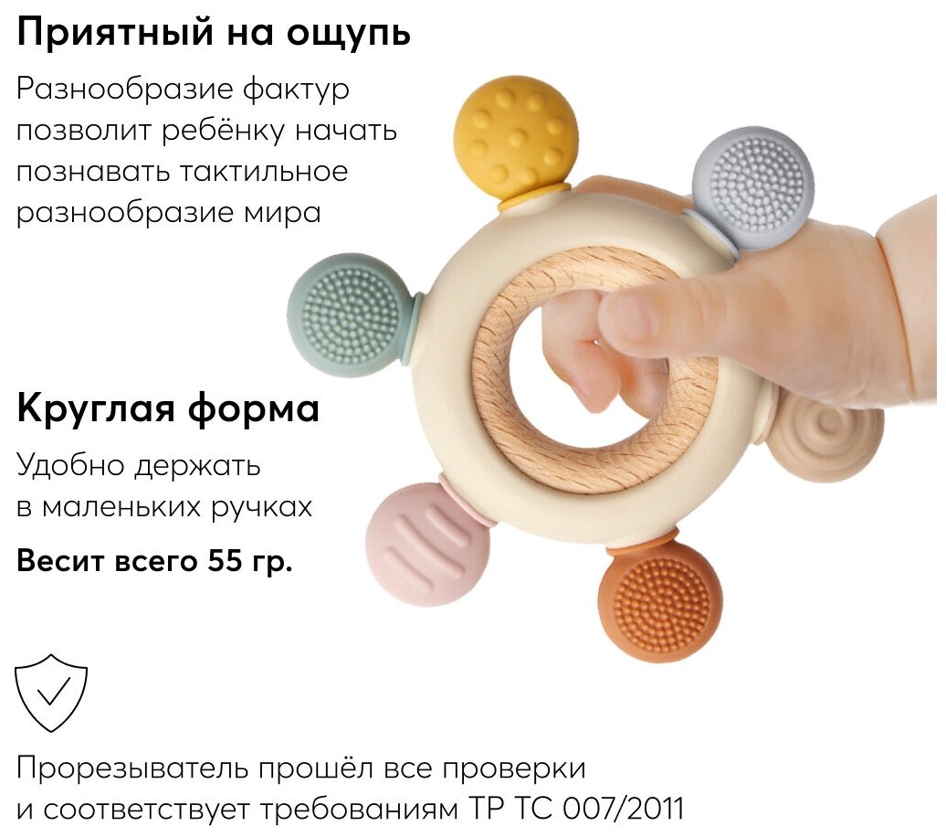 | Дополнительная информация | Деревянное кольцо Мыть теплой водой с мылом, тщательно ополаскивать. Съёмную силиконовую часть можно кипятить не более 5 минут и стерилизовать |