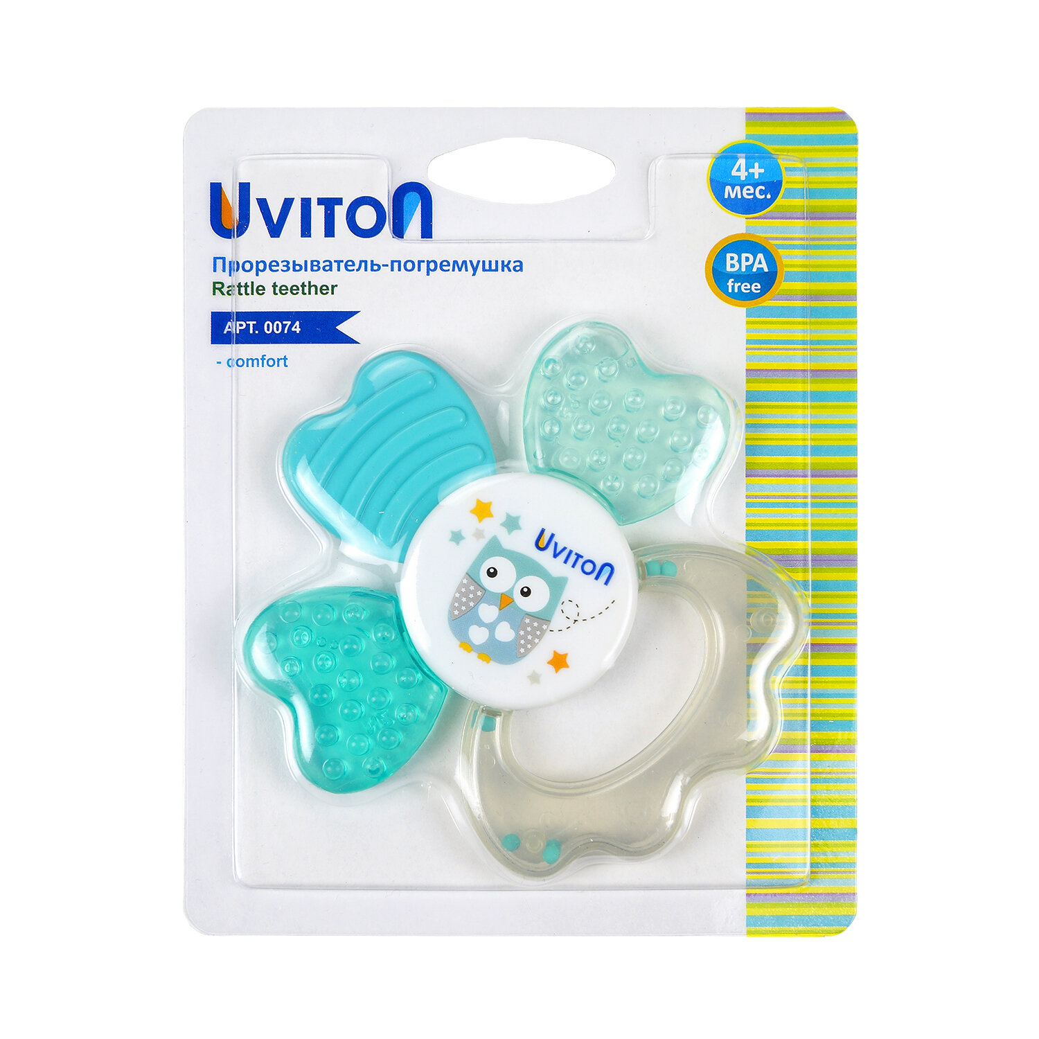 Прорезыватель-погремушка Uviton с охлаждающим эффектом Лепесток мятный 0074 интересное: