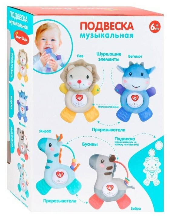 Купить Подвеска музыкальная с прорезывателем ТМ Smart Baby, "Львенок", 11 звуков/сказок/мелодий/потешек, JB0333392