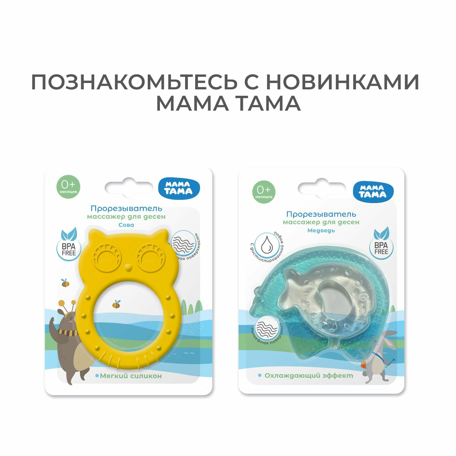 Набор прорезывателей мама тама №7, прорезыватель для зубов Ежик, Паровозик, Машинка, 0+, для малышей, силиконовый
