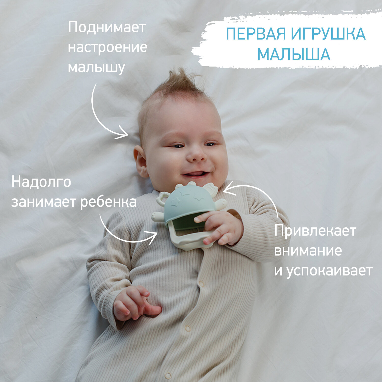 Грызунок прорезыватель для зубов от ROXY-KIDS на руку силиконовый цвет серо-зеленый интересное: