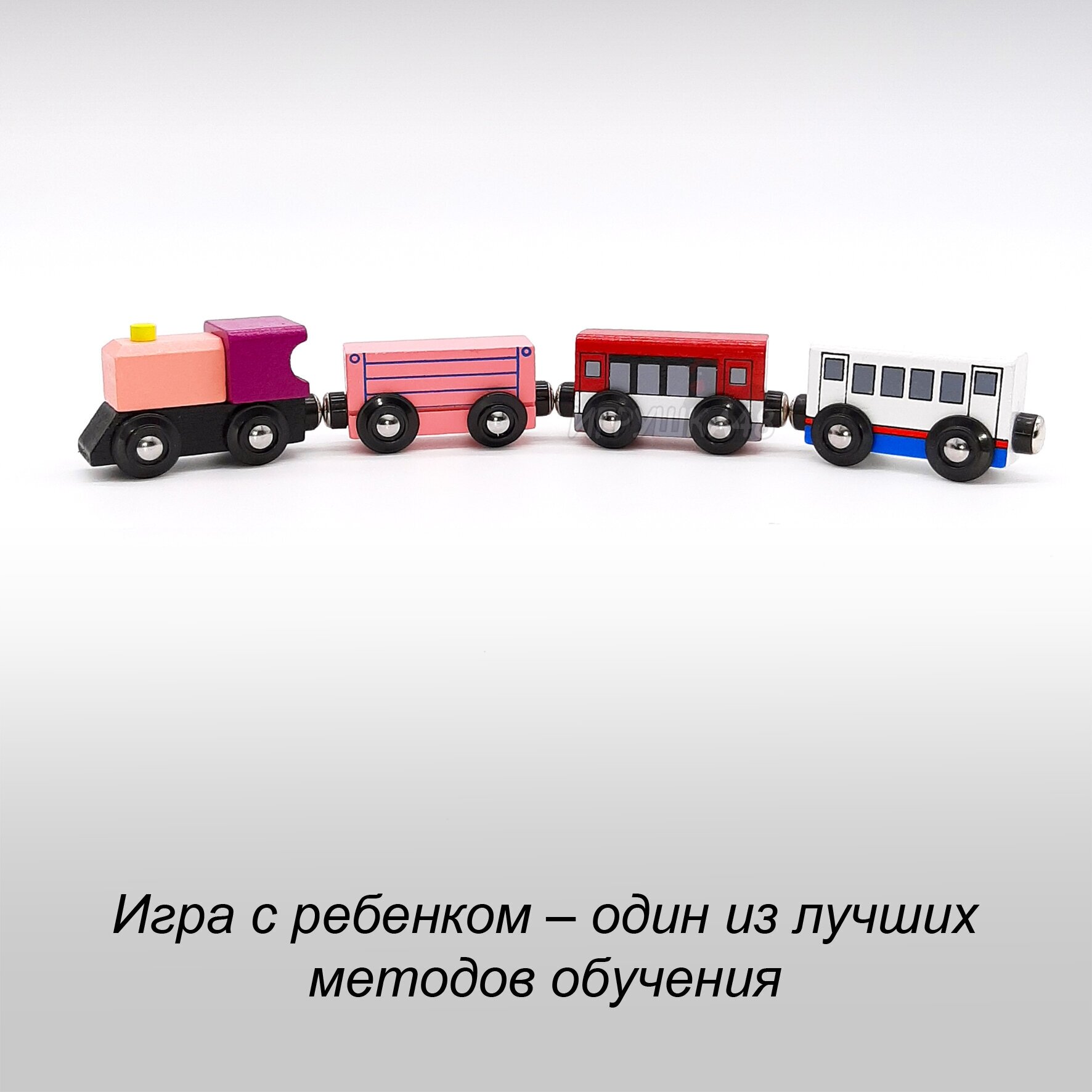 Купить Паровозик деревянный на магнитах / Игрушка детский конструктор поезд с магнитными вагонами / Розовый