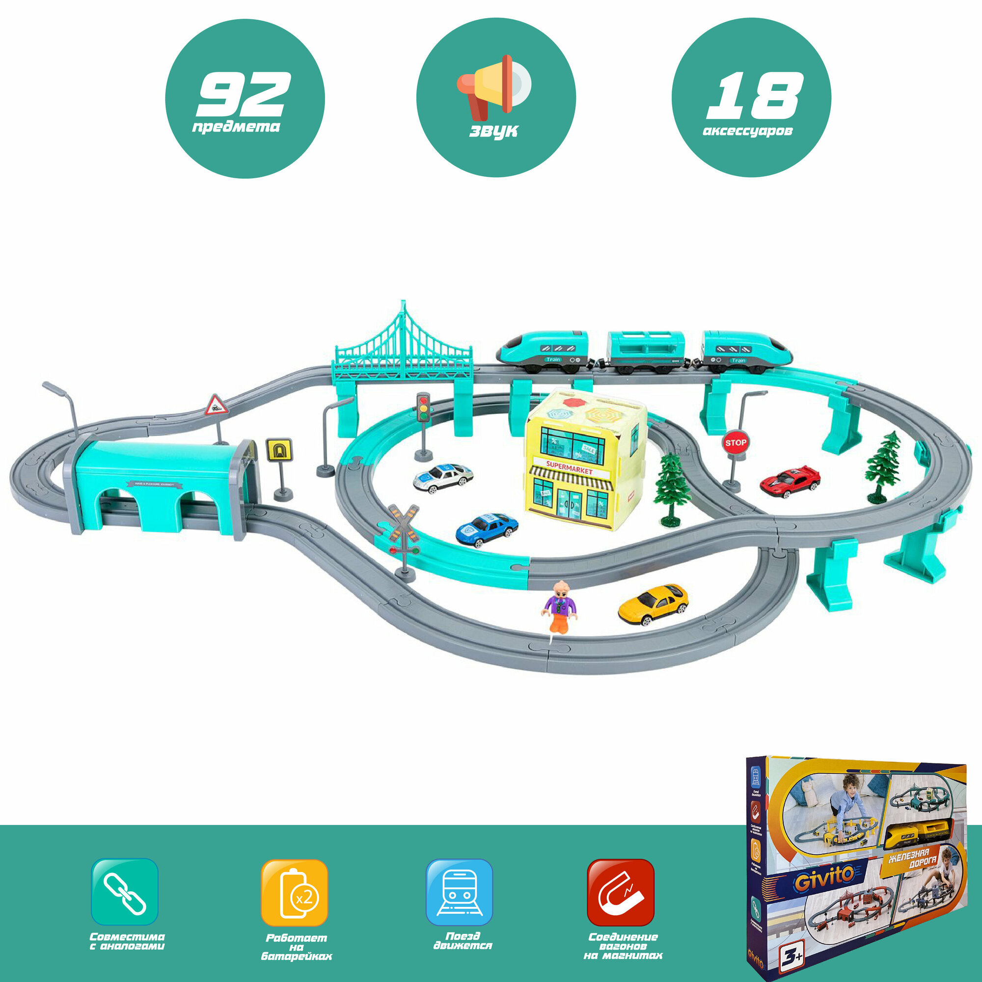 Купить Железная дорога Givito Мой город 92 предмета на батарейках со звуком