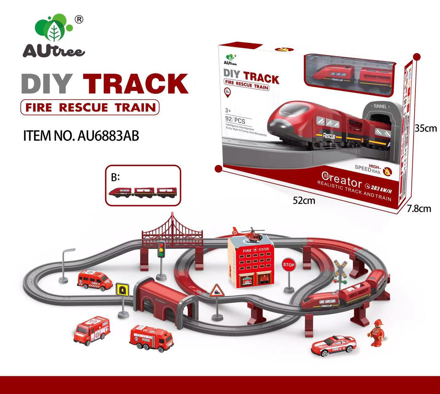 Купить Двухуровневая железная дорога c электропоездом, машинками и аксессуарами Fire Rescue Train Пожарные, 92 детали