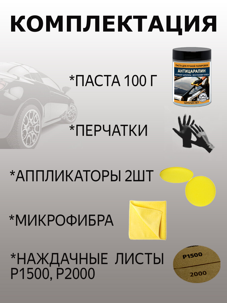 | Дополнительная информация | Паста применима как для ручной, так и машинной полировки, набор автомобилиста |