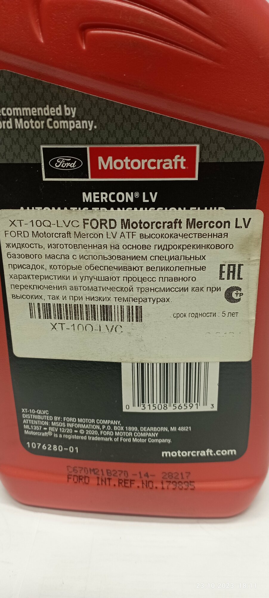 Ниже Вы можете прочитать отзывы на MOTORCRAFT MERCON LV ATF (0,946л) масло трансм. MOTORCRAFT XT10QLVC, ознакомится с подробными характеристиками, посмотреть интересные обзоры и фотографии на MOTORCRAFT MERCON LV ATF (0,946л) масло трансм. MOTORCRAFT XT10QLVC.
