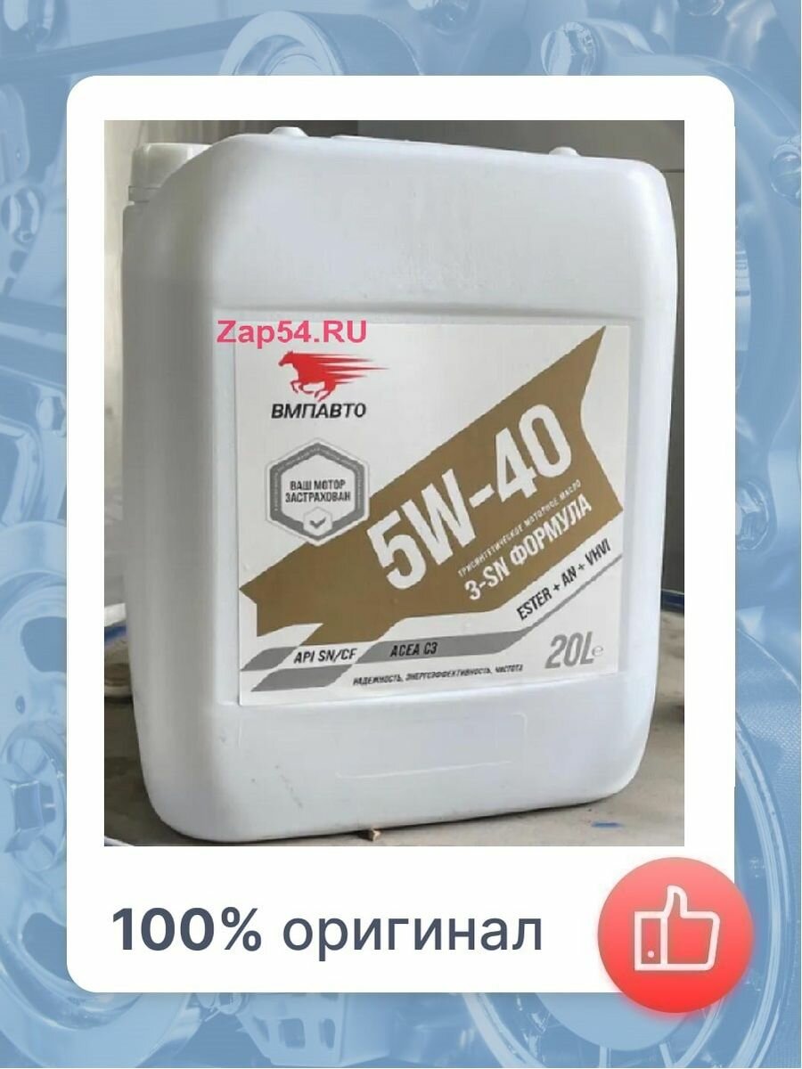 VMPAUTO 9236 Масо моторное ВМПАВТО 3-SN 5w40 (С3, SN/CF), канистра 20. интересное: