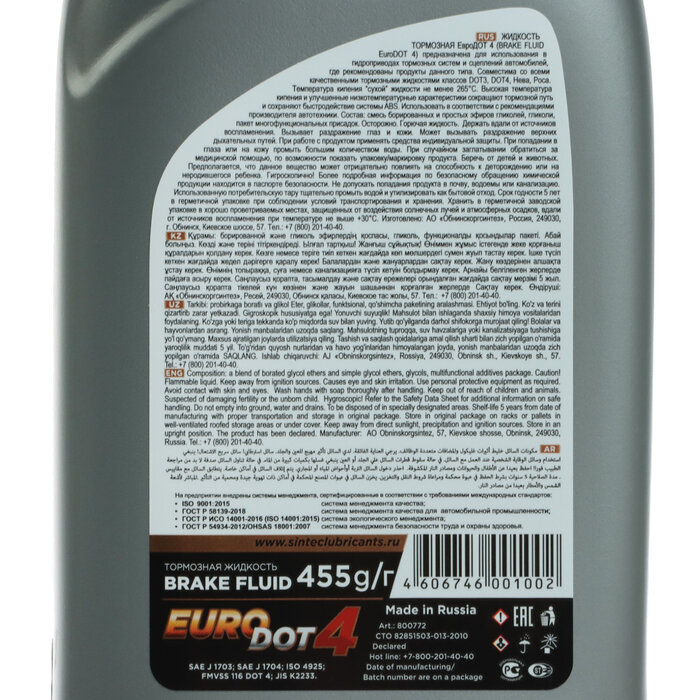 Купить Тормозная жидкость Sintec Euro Dot-4, 455 мл