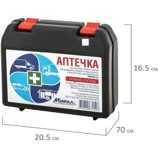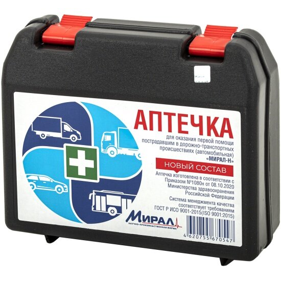 Аптечка Мирал-н первой помощи автомобильная , футляр полистирол, состав - по приказу № 1080н, ФП 4 интересное: