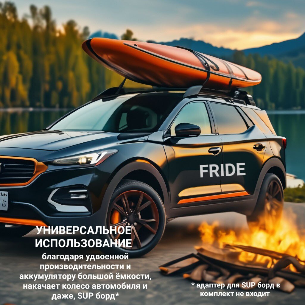 | Дополнительная информация | насос компрессор двухпоршневой 50 л в минуту (накачка до 2х раз быстрее чем обычный насос) с увеличенным аккумулятором Li-Ion 12000мАч и функцией повербанк power bank, насос также подойдет для накачки САП SUP борда, ватрушек (тюбинга). 2 способа питания: быстрая зарядка Type-C и от 12В прикуривателя |