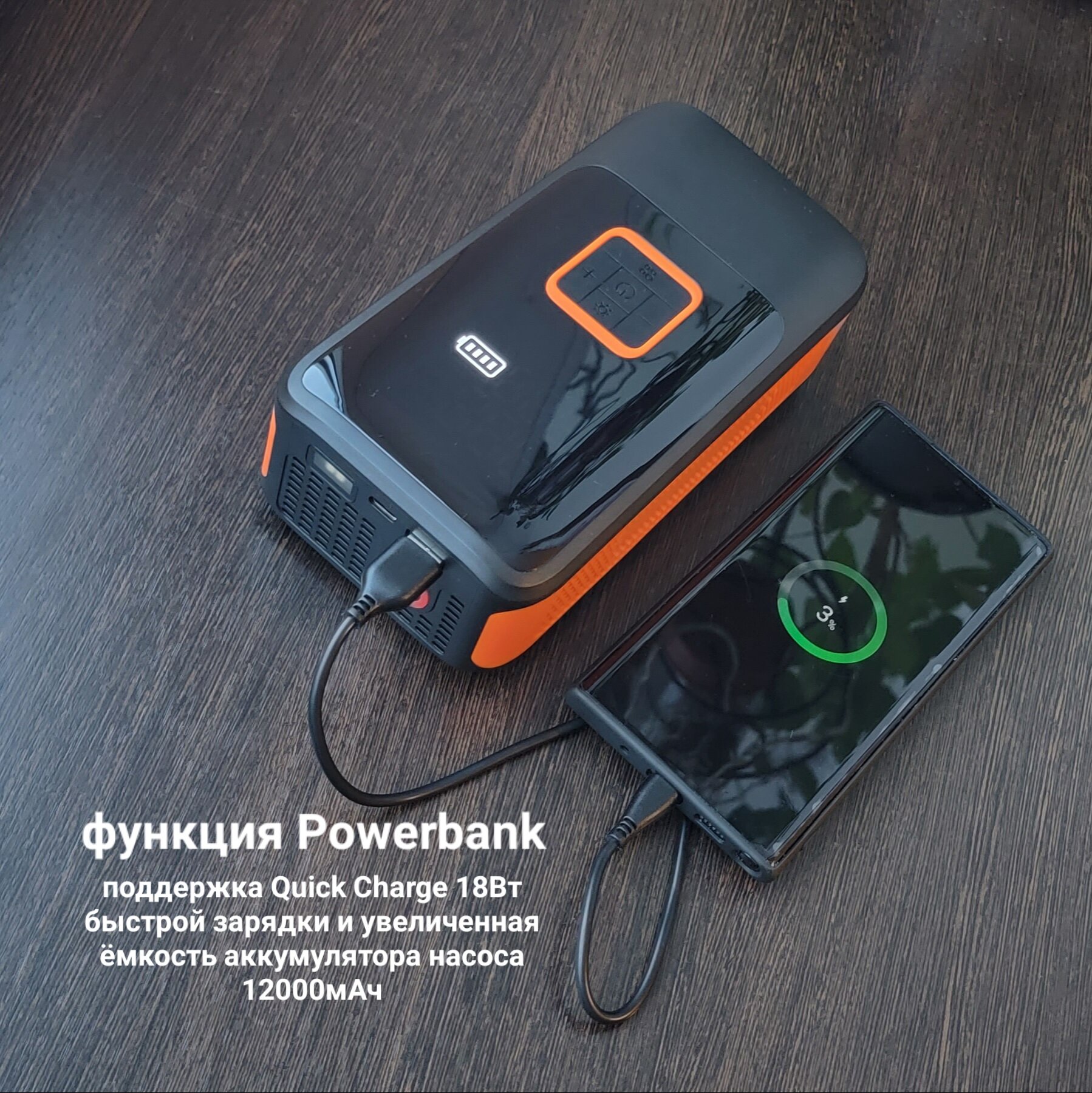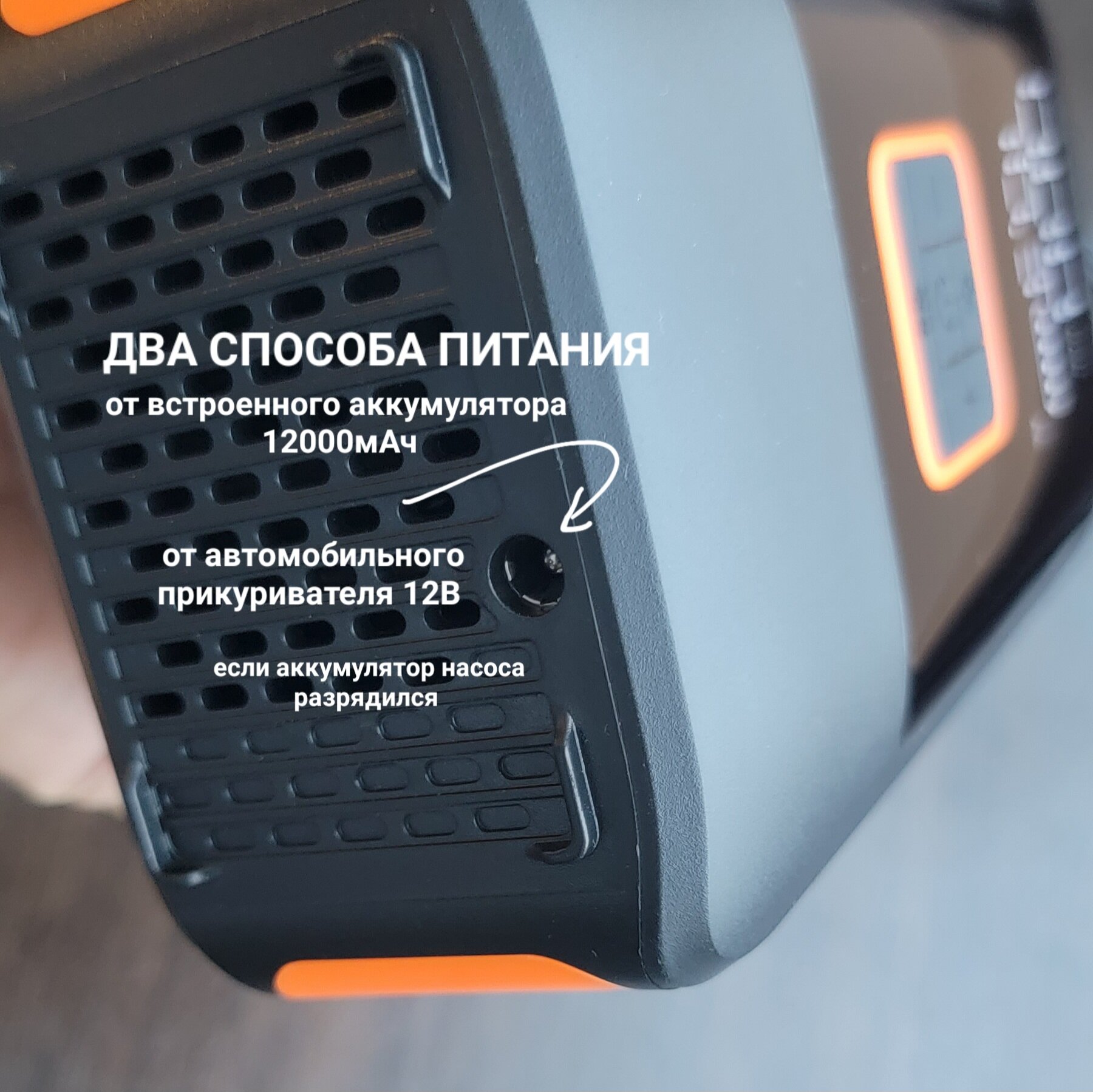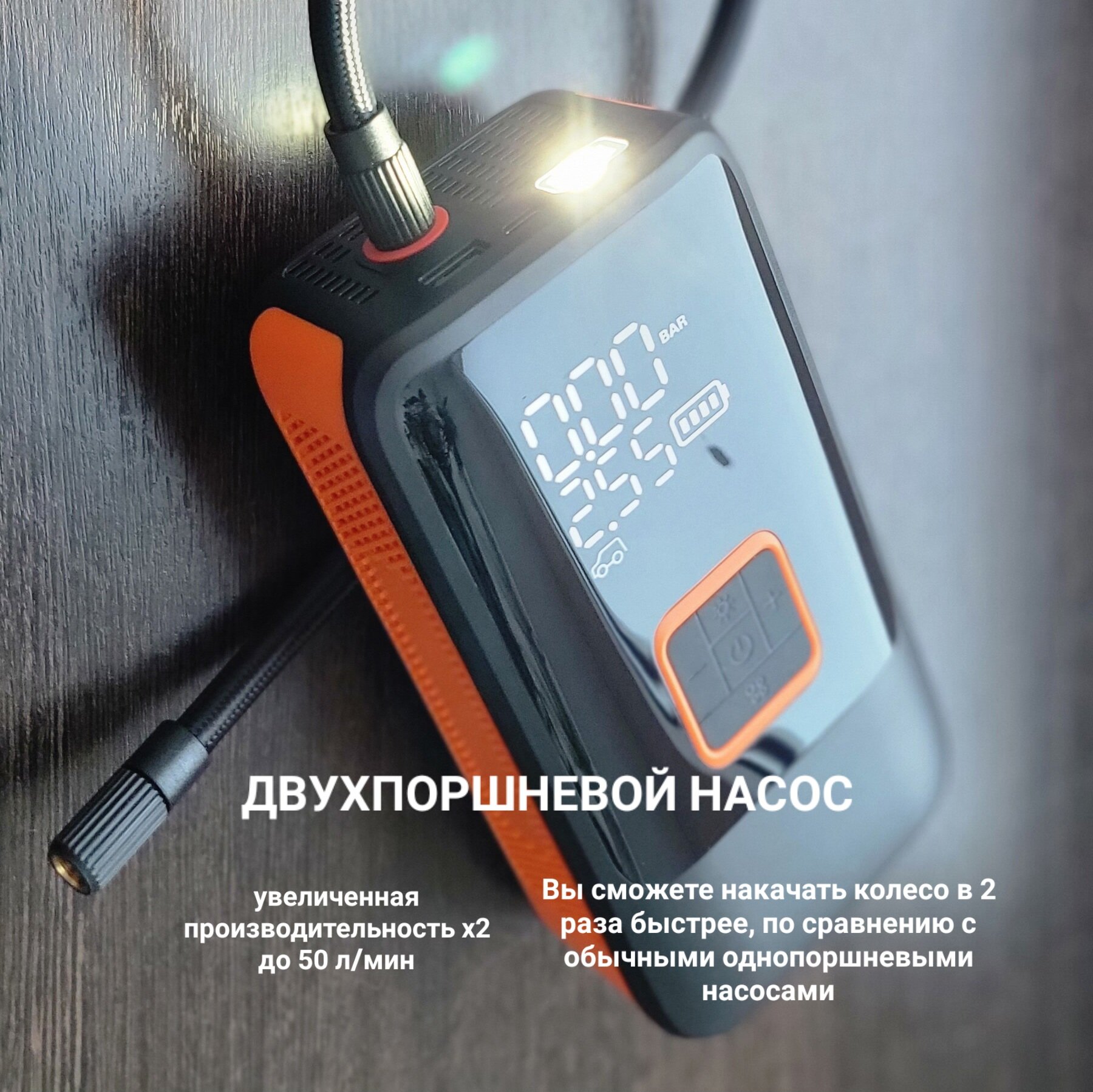 Автомобильный насос компрессор аккумуляторный двухпоршневой беспроводной 2в1 питание 12В /Type-C повербанк 12000 мАч 10 Бар интересное: