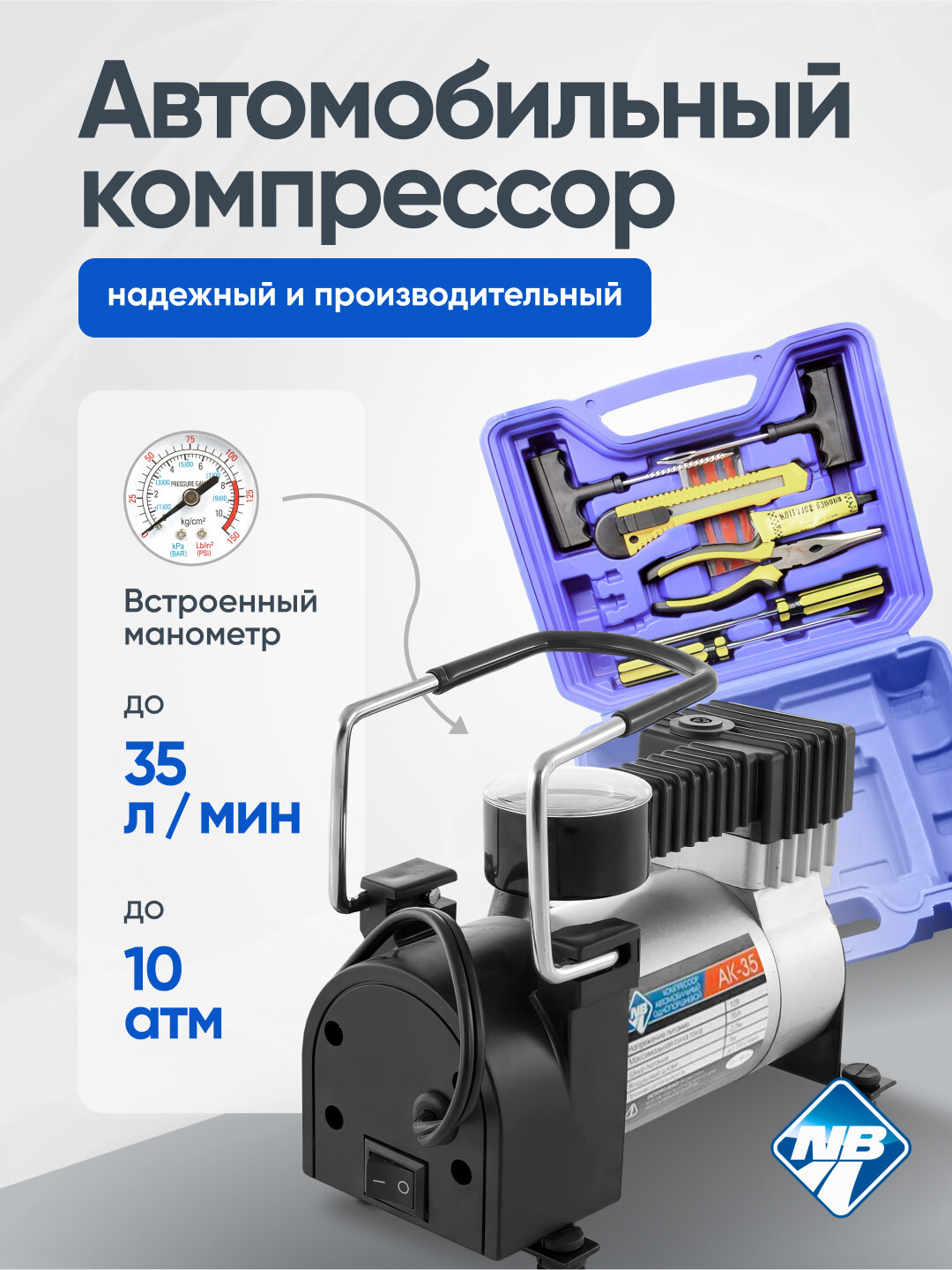 Компрессор "Nova Bright" АК-35, 35 л/мин.,кейс с инструментом. интересное: