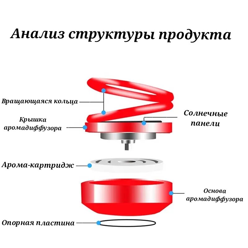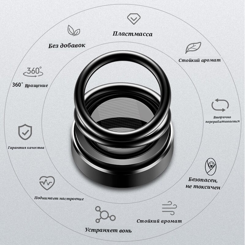 Ароматизатор в машину на солнечной батарее "Вращающаяся кольца" интересное: