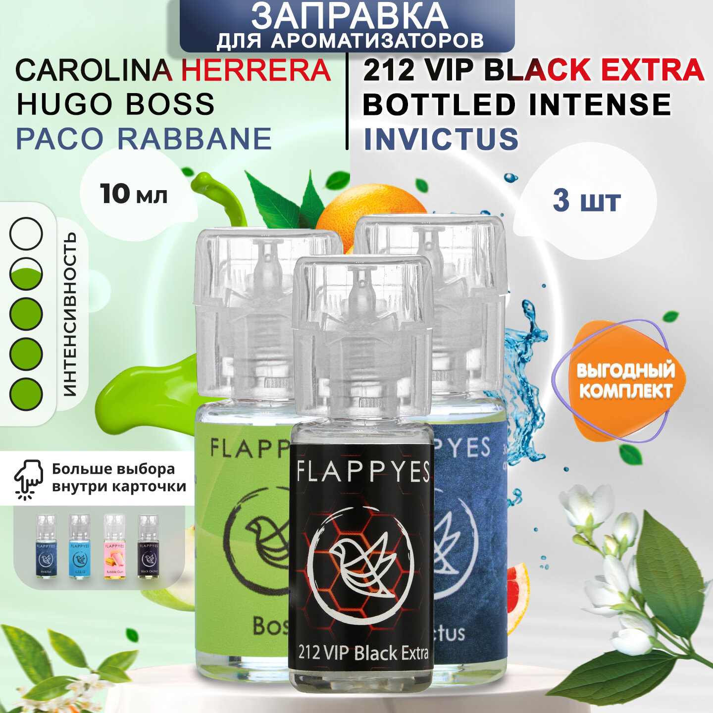 Купить Заправка для ароматизаторов авто и дома Flappyes - Rabbane Invictus+Boss+212 VIP Black