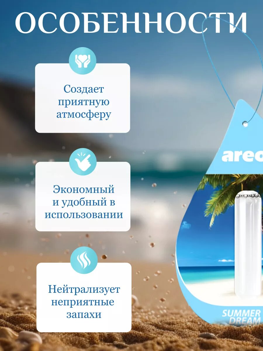 Ароматизатор на зеркало Areon Liquid жидкий летняя мечта 5 мл *Л
