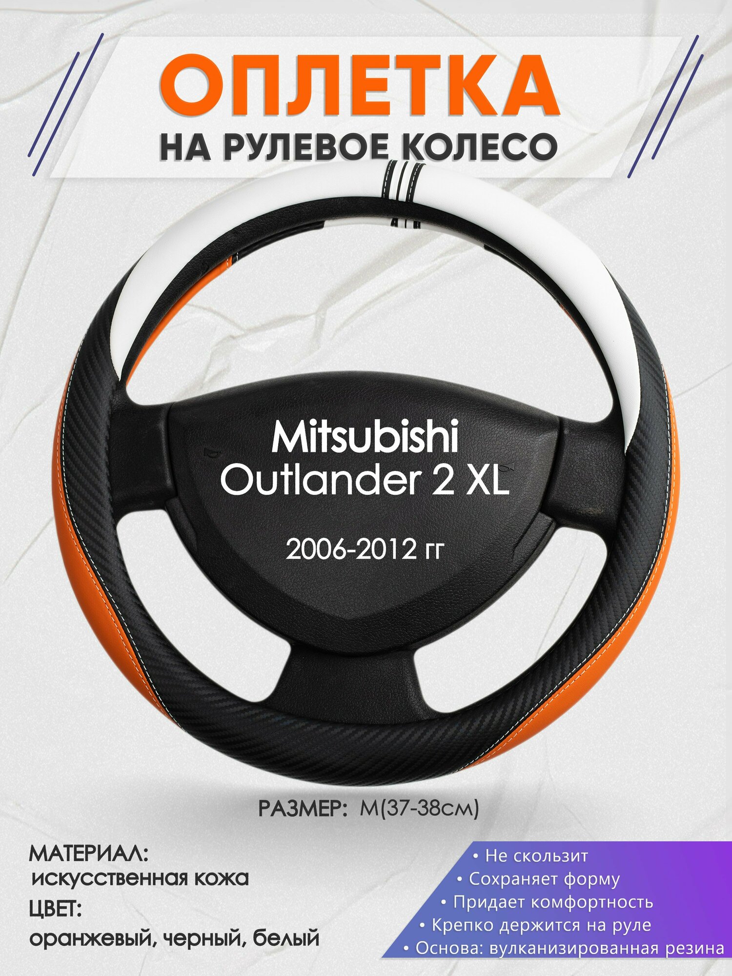Оплетка на руль для Mitsubishi Outlander 2 XL(Митсубиси Аутлендер 2 хл) 2006-2012, M(37-38см), Искусственная кожа 01