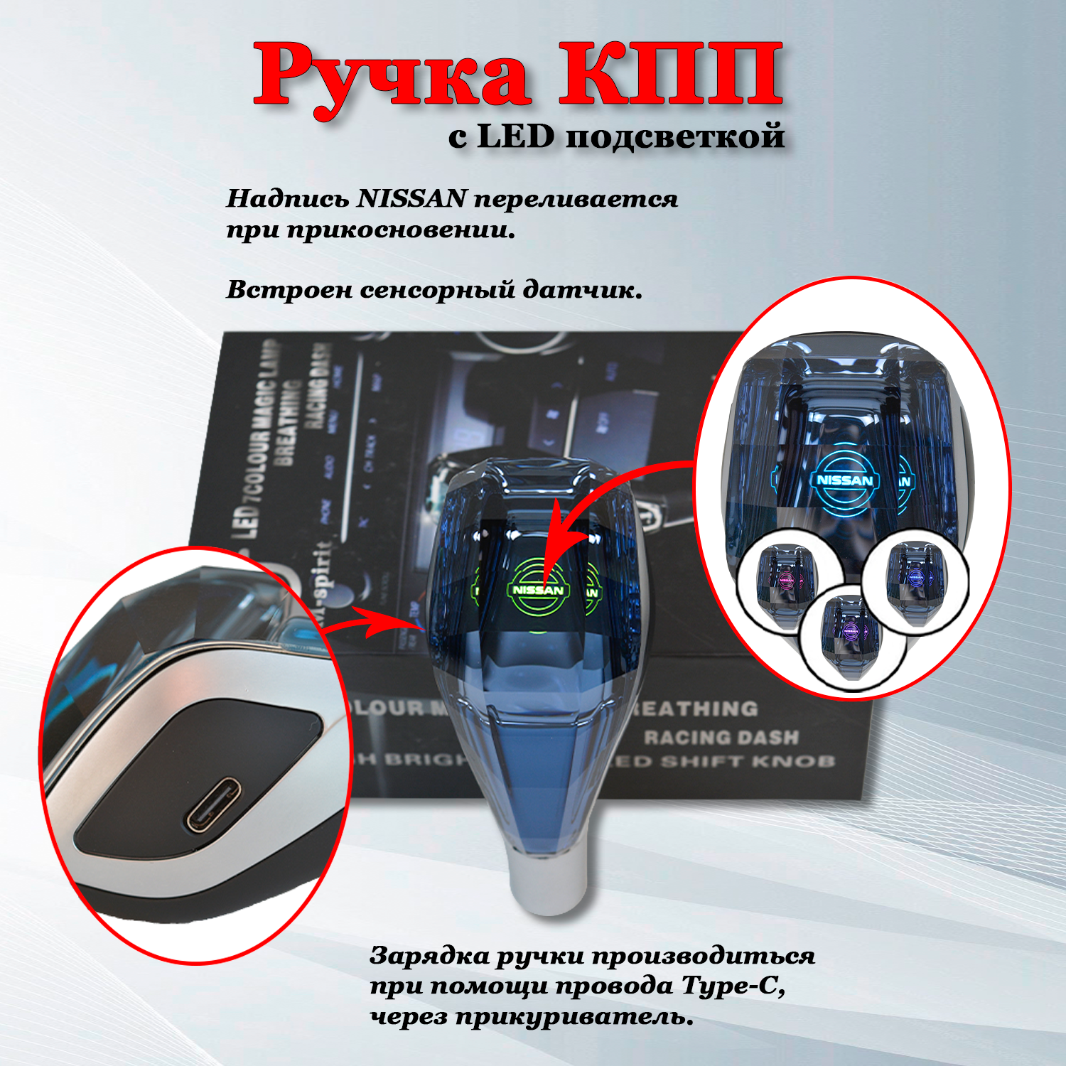 Ручка коробки передач с LED подсветкой универсальная, Аксессуар в авто КПП-рычаг сенсорный для Ниссан / Nissan интересное: