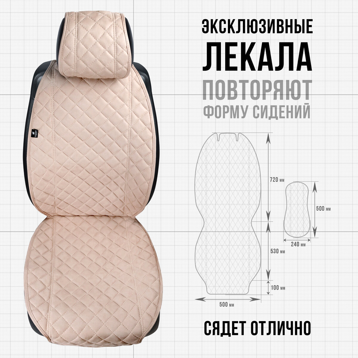 Купить Накидки на сиденья автомобиля из алькантары 2 шт. Модель L. Тёмно-бежевый