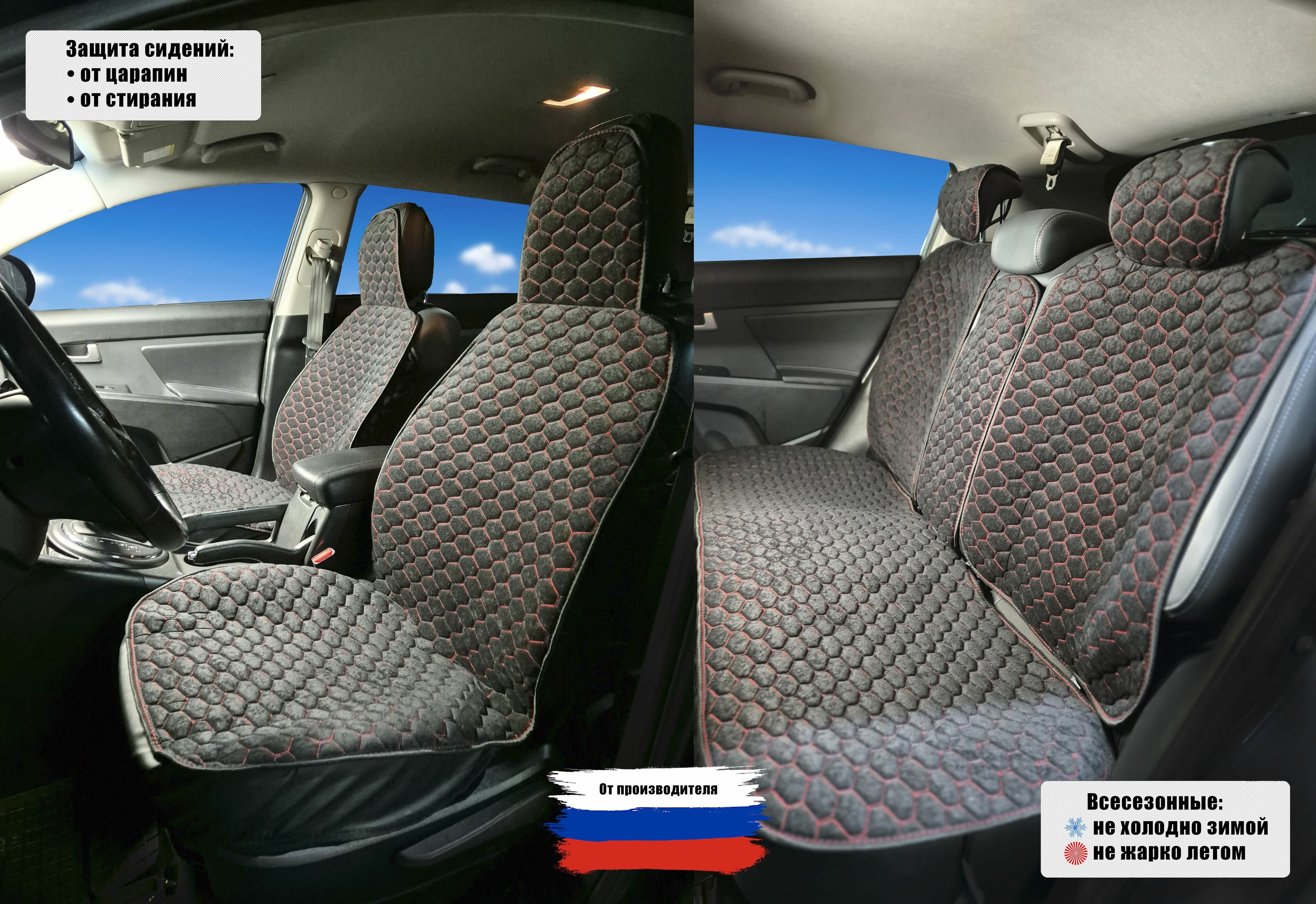 Накидки для Лада Приора (2013 - 2018) универсал 5 дверей / LADA (ВАЗ) Priora на весь салон G-Soty, Велюр, Черный с красной строчкой интересное: