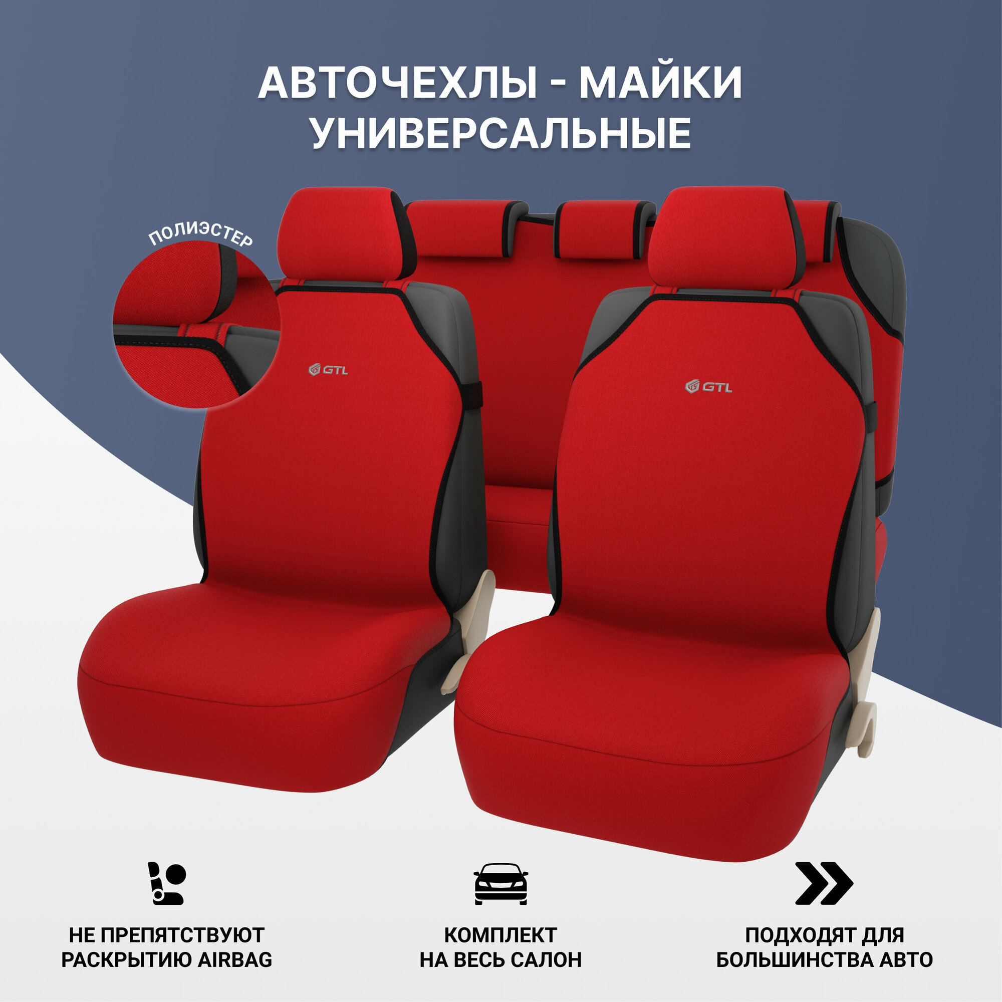 Чехлы в машину универсальные GTL Start Plus (Красный), комплект на весь салон