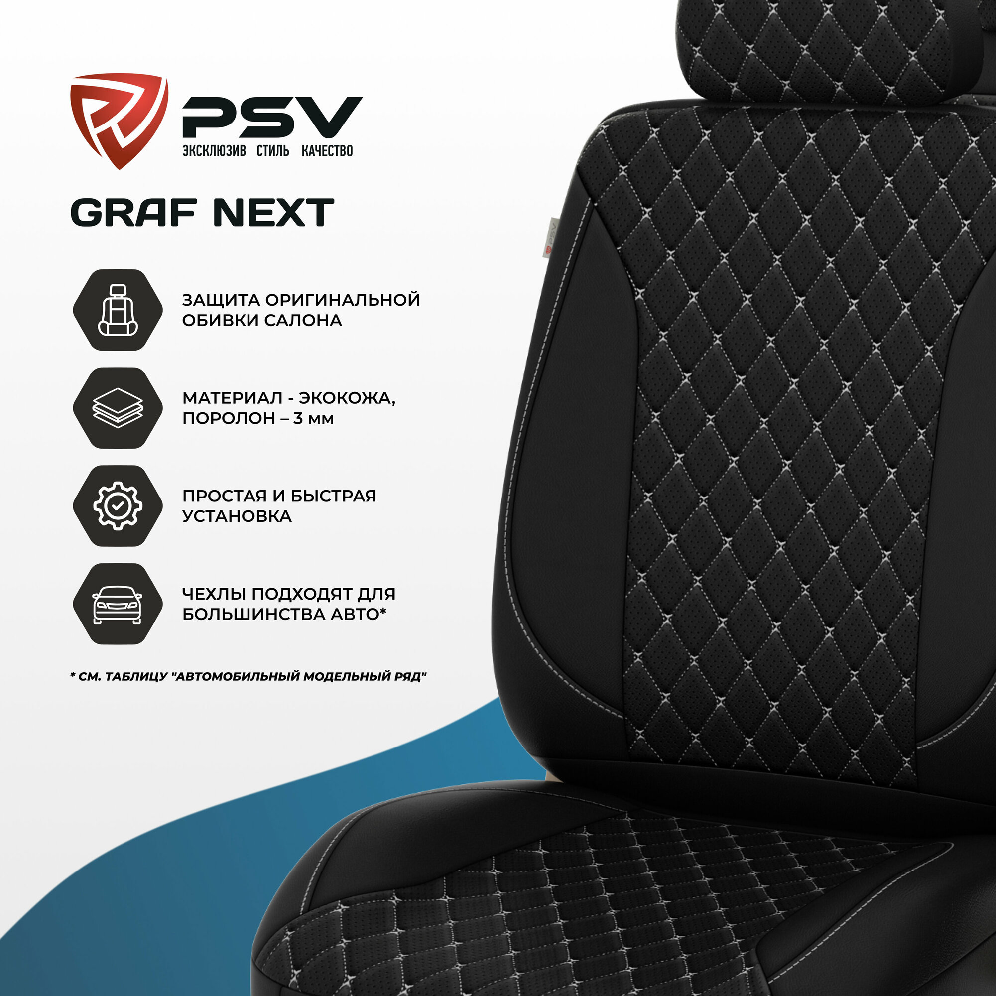 PSV 136300 Чехлы "PSV" Graf Next (Черный/Ромб черный "Бабочка"/отстрочка черная), ромб + экокожа