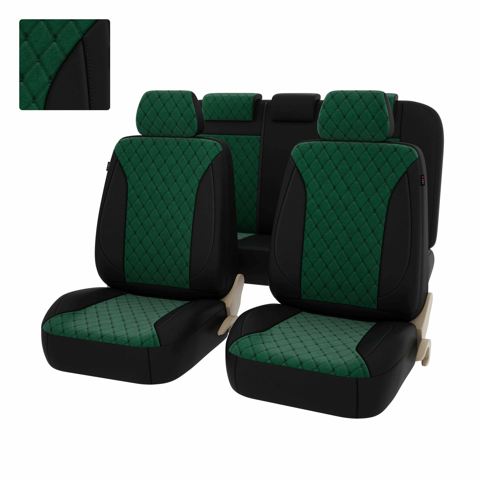 Чехлы PSV Graf Next велюр/экокожа ромб бабочка черная отстрочка черно-зеленые PSV PSV 136470 | цена за 1 шт