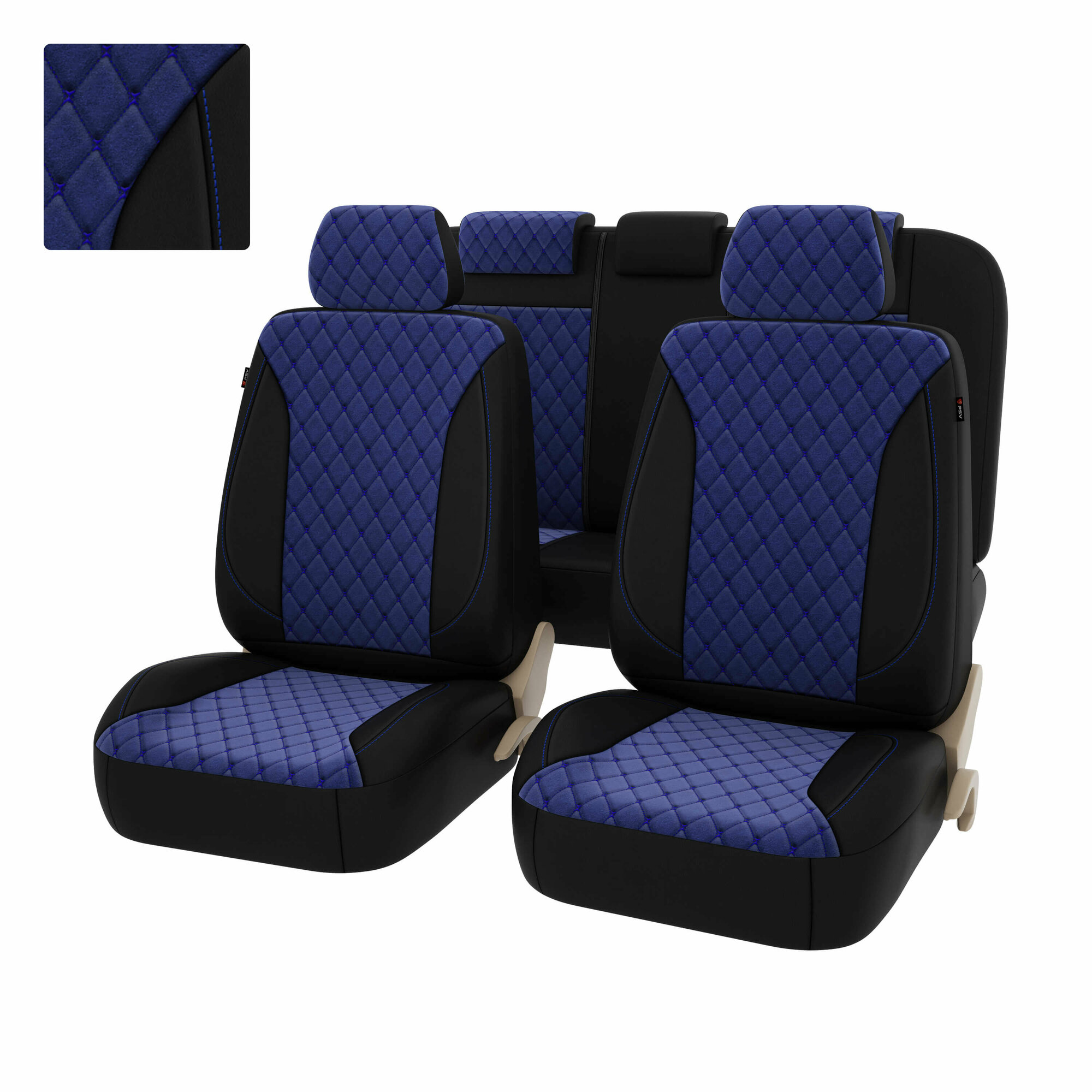 Чехлы PSV Graf Next велюр/экокожа ромб бабочка синяя отстрочка черно-синие PSV PSV 136467 | цена за 1 шт