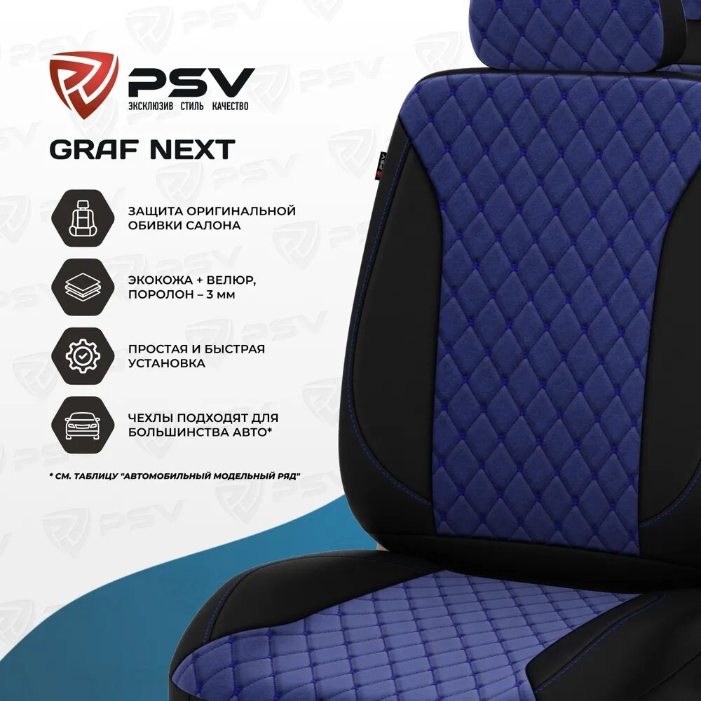 Купить Чехлы в машину универсальные PSV Graf Next (Черно-синий, ромб синий), велюр + экокожа, 136467