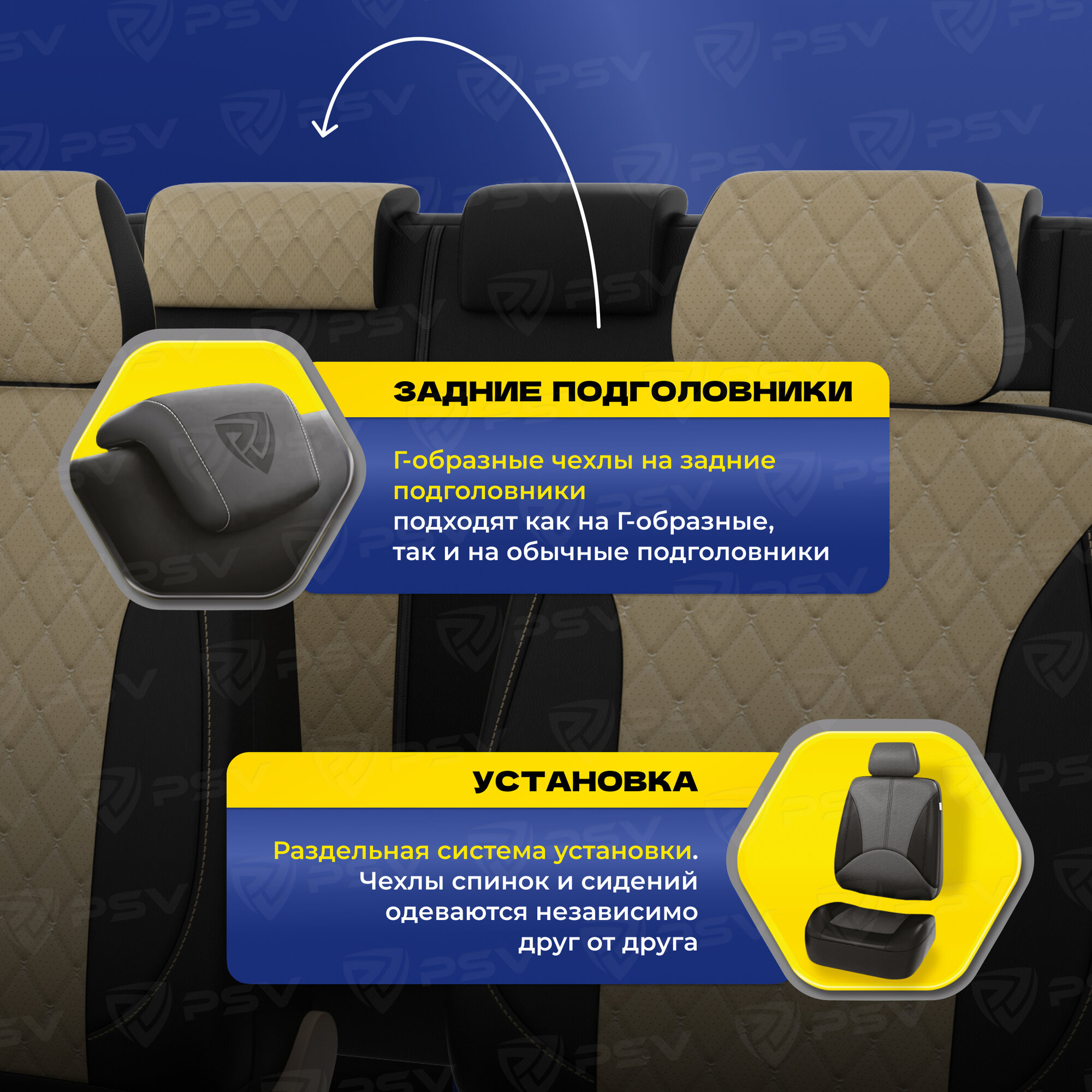 Чехлы PSV Graf Next велюр/экокожа ромб бабочка бежевая отстрочка черно-бежевые PSV PSV 136469 | цена за 1 шт