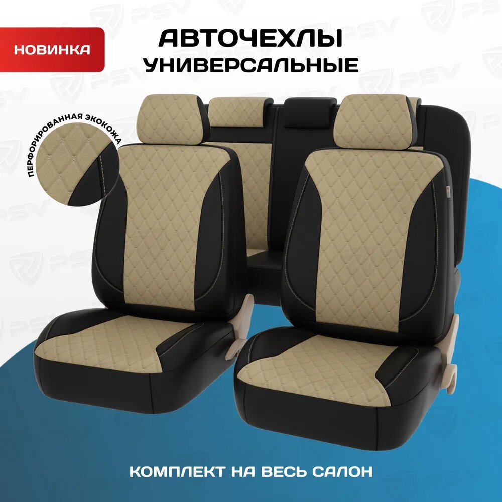 Чехлы PSV Graf Next экокожа ромб бабочка бежевая отстрочка черно-бежевые PSV PSV 136306 | цена за 1 шт