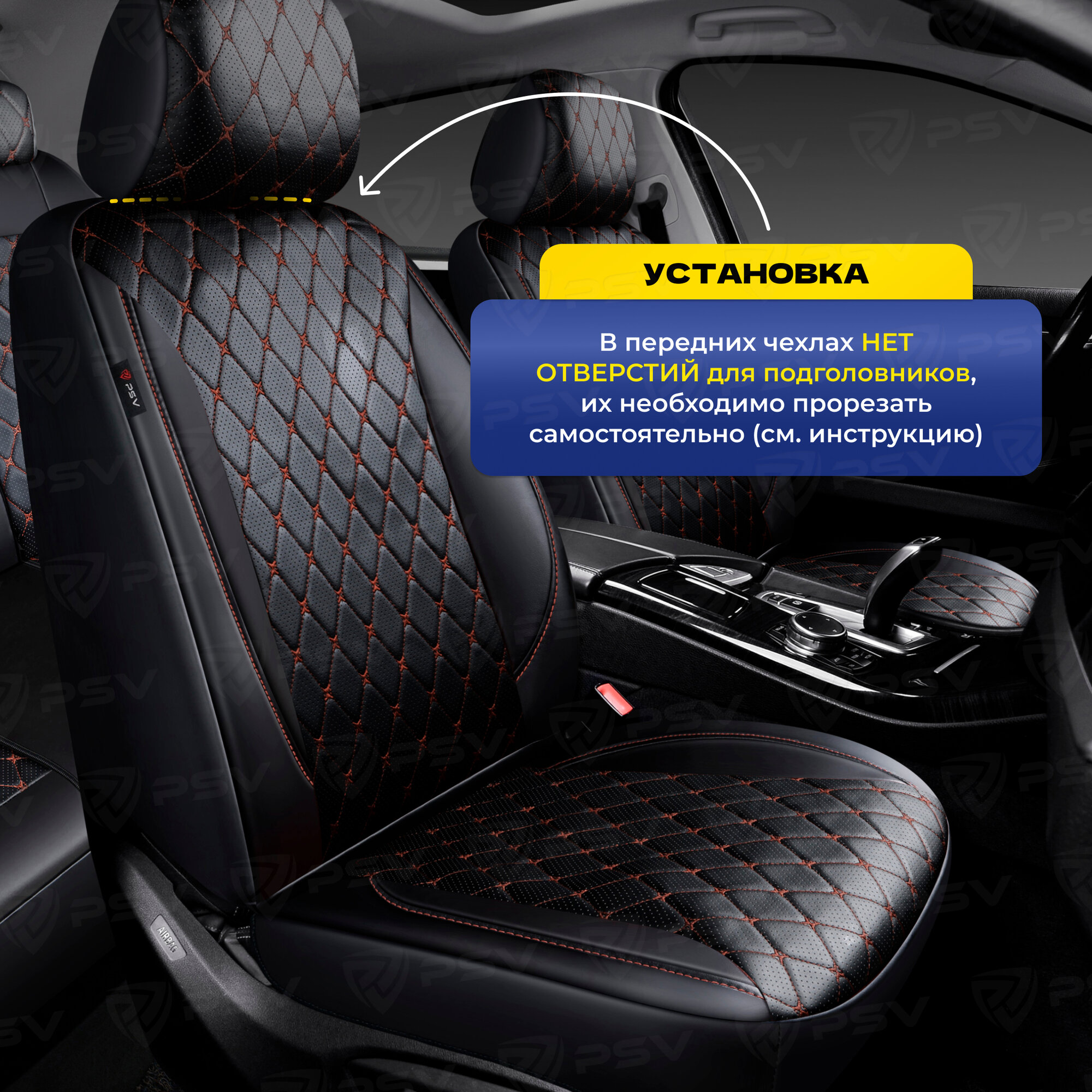 Купить Чехлы PSV Graf Next (Черный, ромб коричневый, отстрочка коричневая), ромб + экокожа, 136901