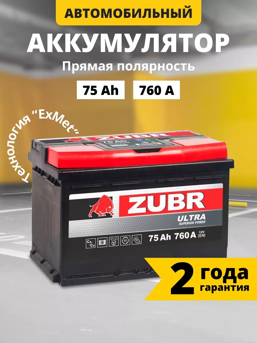 Аккумулятор автомобильный ZUBR Ultra 75 Ah 760 A прямая полярность 278x175x190 интересное: