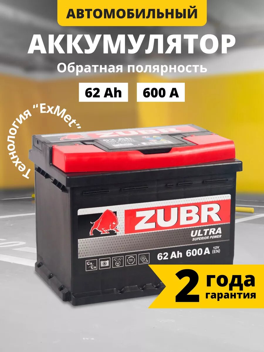 Аккумулятор автомобильный ZUBR Ultra (низкий) 62 Ah 600 A обратная полярность 242x175x175 интересное: