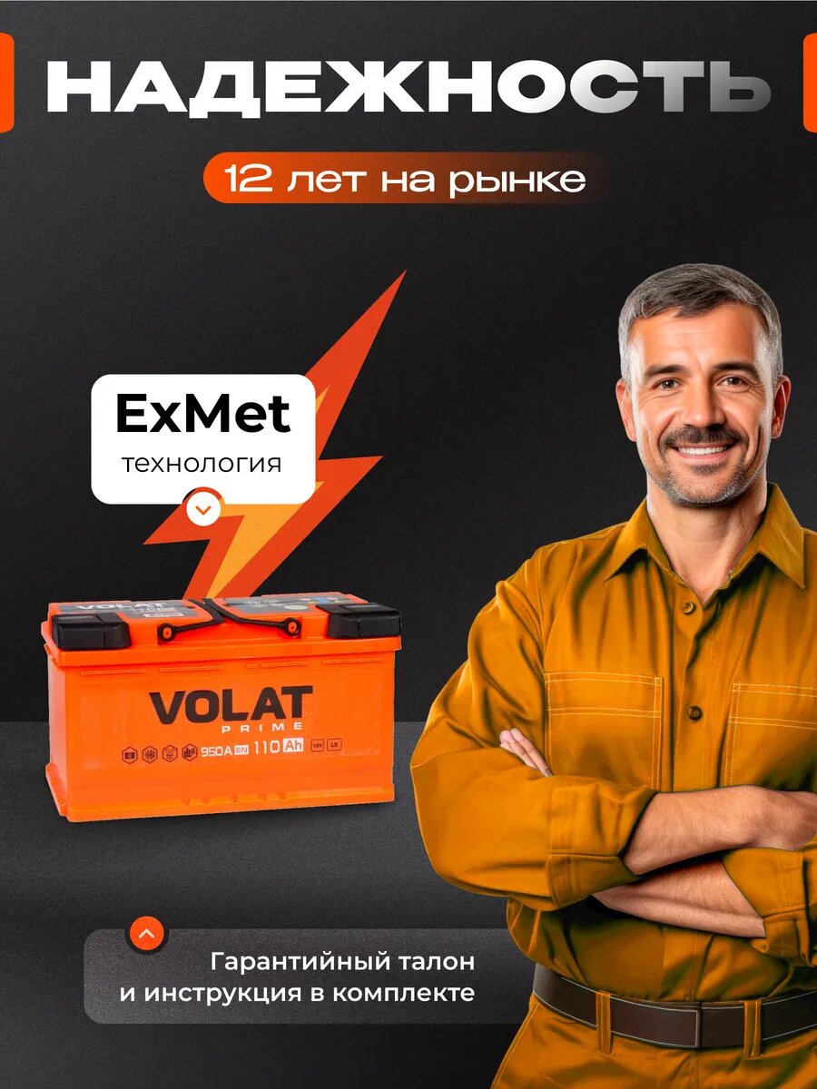 Аккумулятор автомобильный VOLAT Prime 110 Ач 950 A прямая полярность 353x175x190 мм