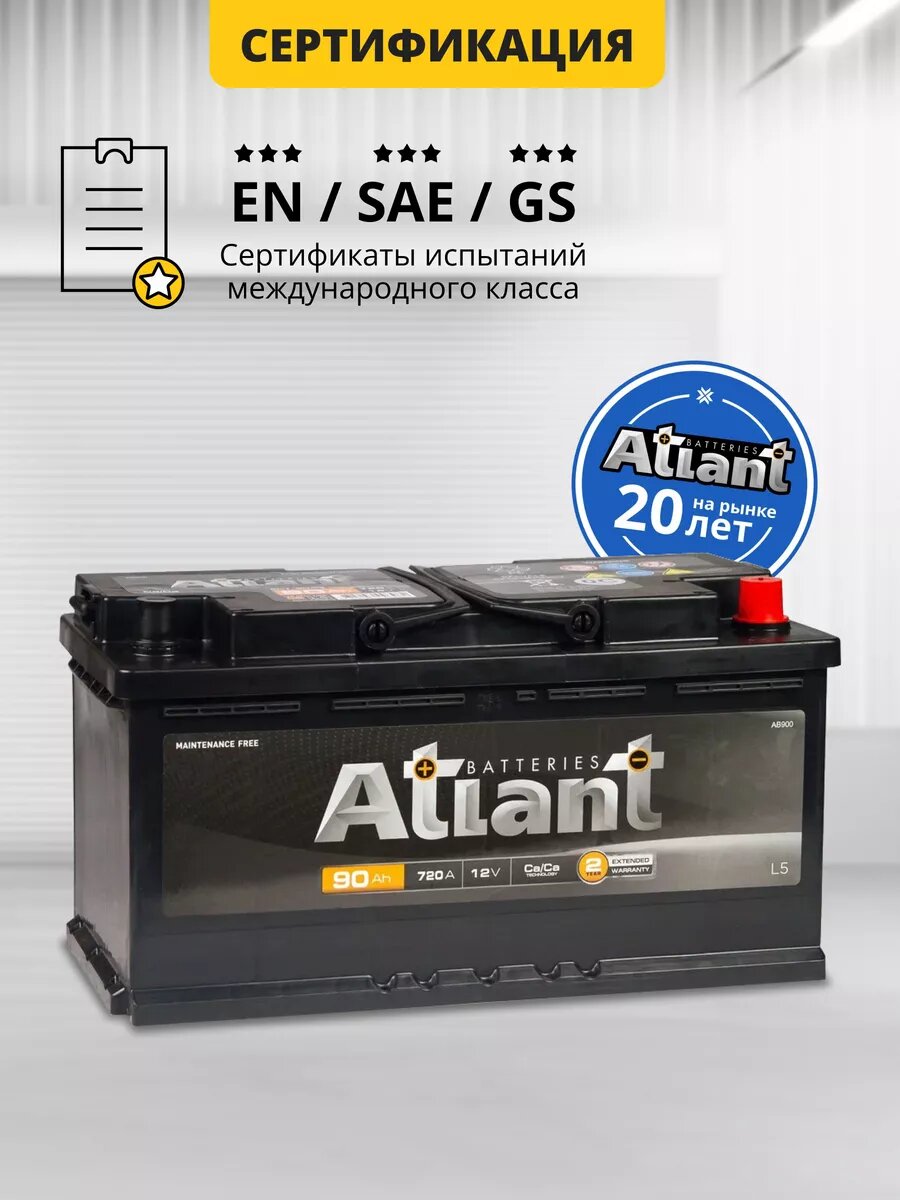 ATLANT AB901 Аккумулятор ATLANT BLACK 90Ah L+(прям) 353/175/190 (720A)