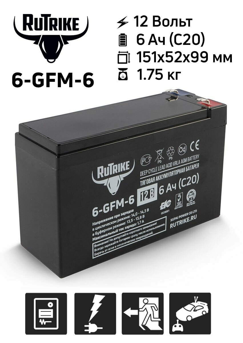 Тяговый аккумулятор RuTrike 6-GFM-6 12V 6Ah