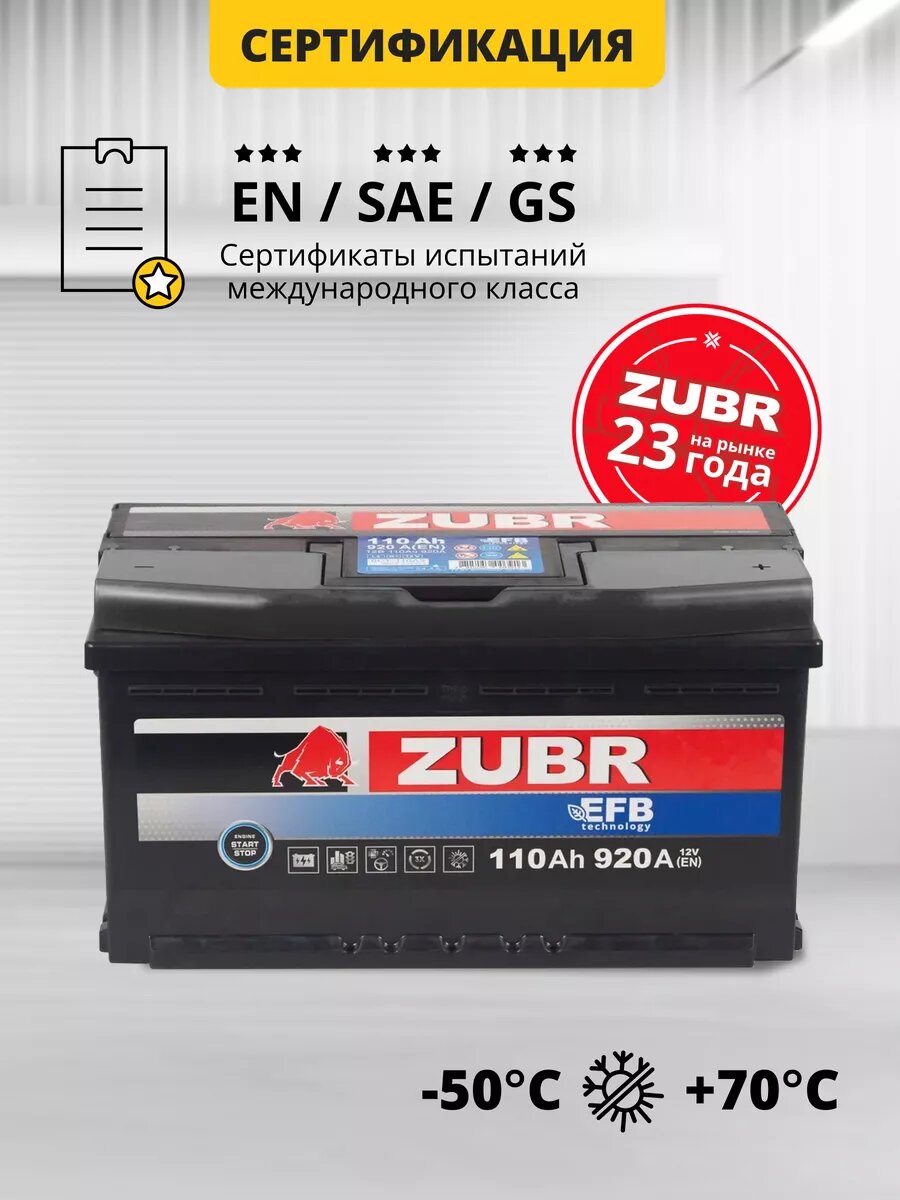 Аккумулятор автомобильный ZUBR EFB 110 Ah 920 A обратная полярность 353x175x190 интересное: