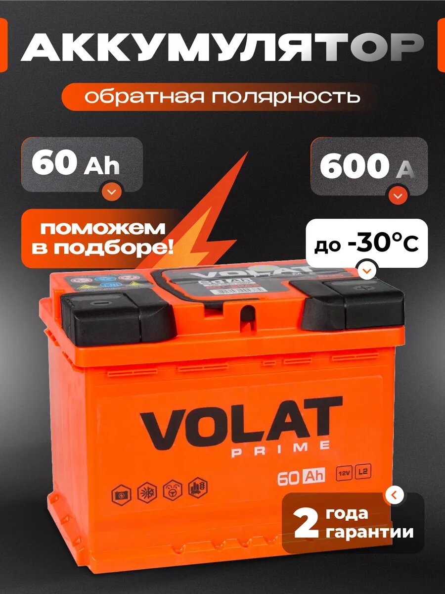 СохранитьАккумулятор автомобильный VOLAT Prime 60 Ah 600 A обратная полярность 242x175x190 интересное: