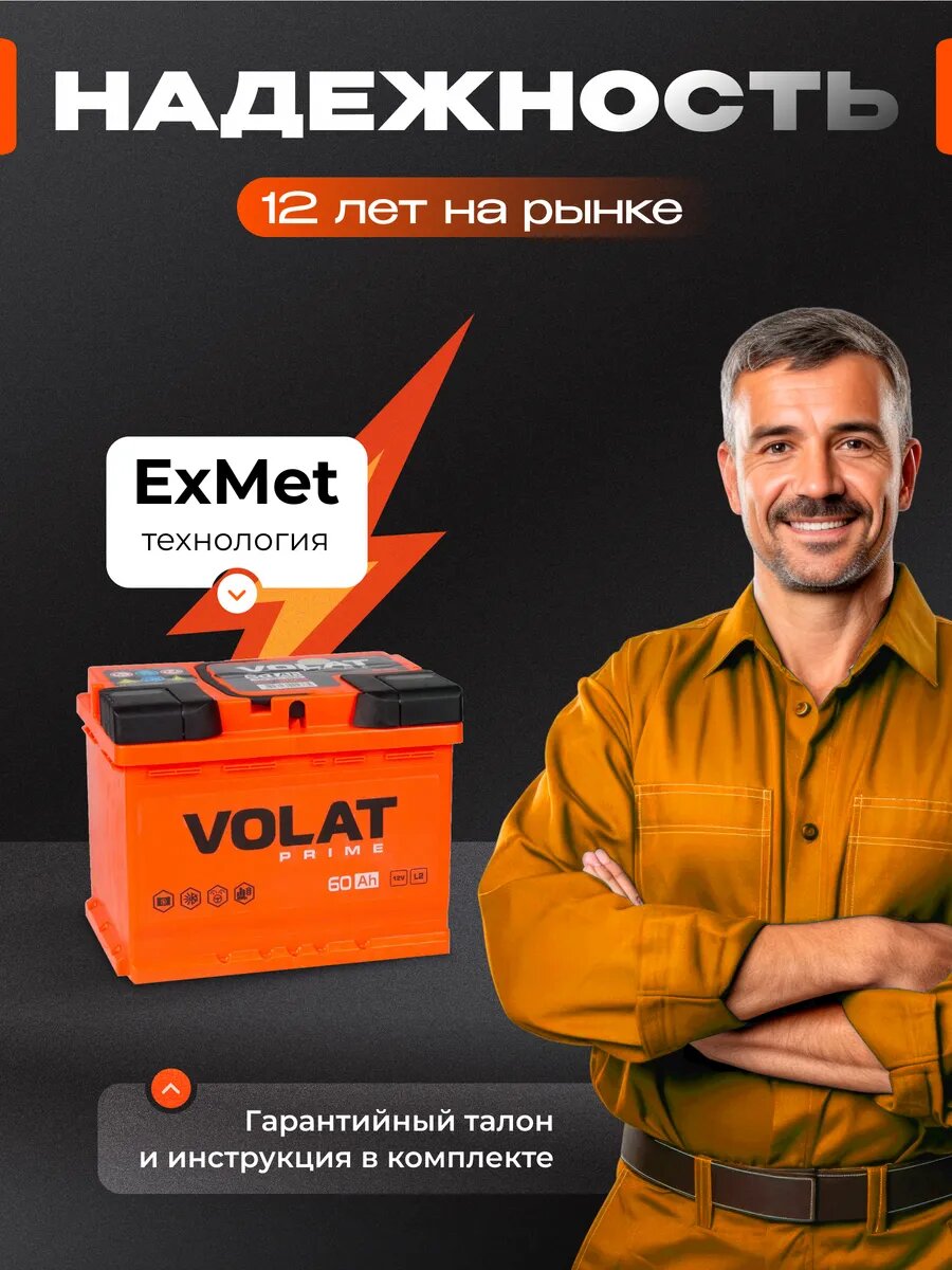 СохранитьАккумулятор автомобильный VOLAT Prime 60 Ah 600 A прямая полярность 242x175x190 интересное: