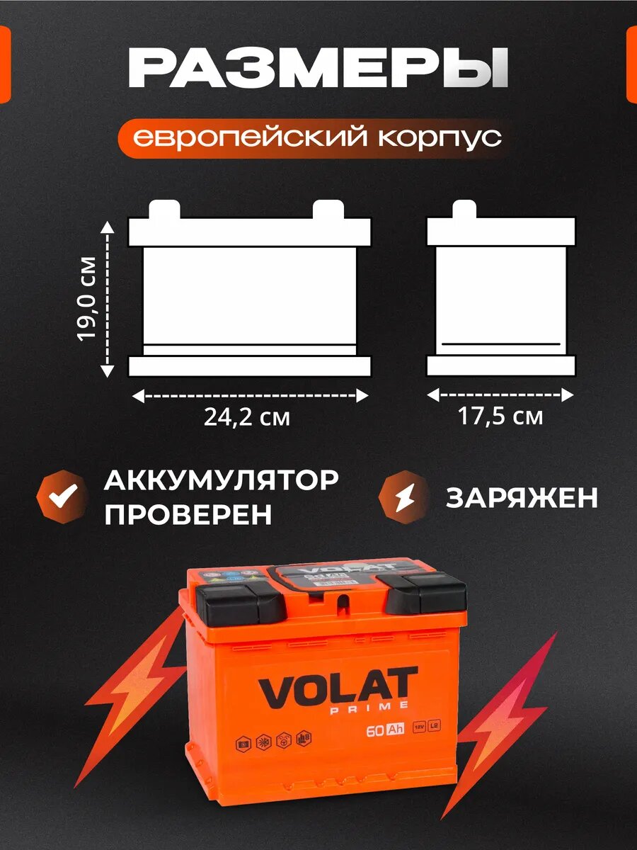 Купить Аккумулятор автомобильный VOLAT Prime 60 Ah 600 A прямая полярность 242x175x190