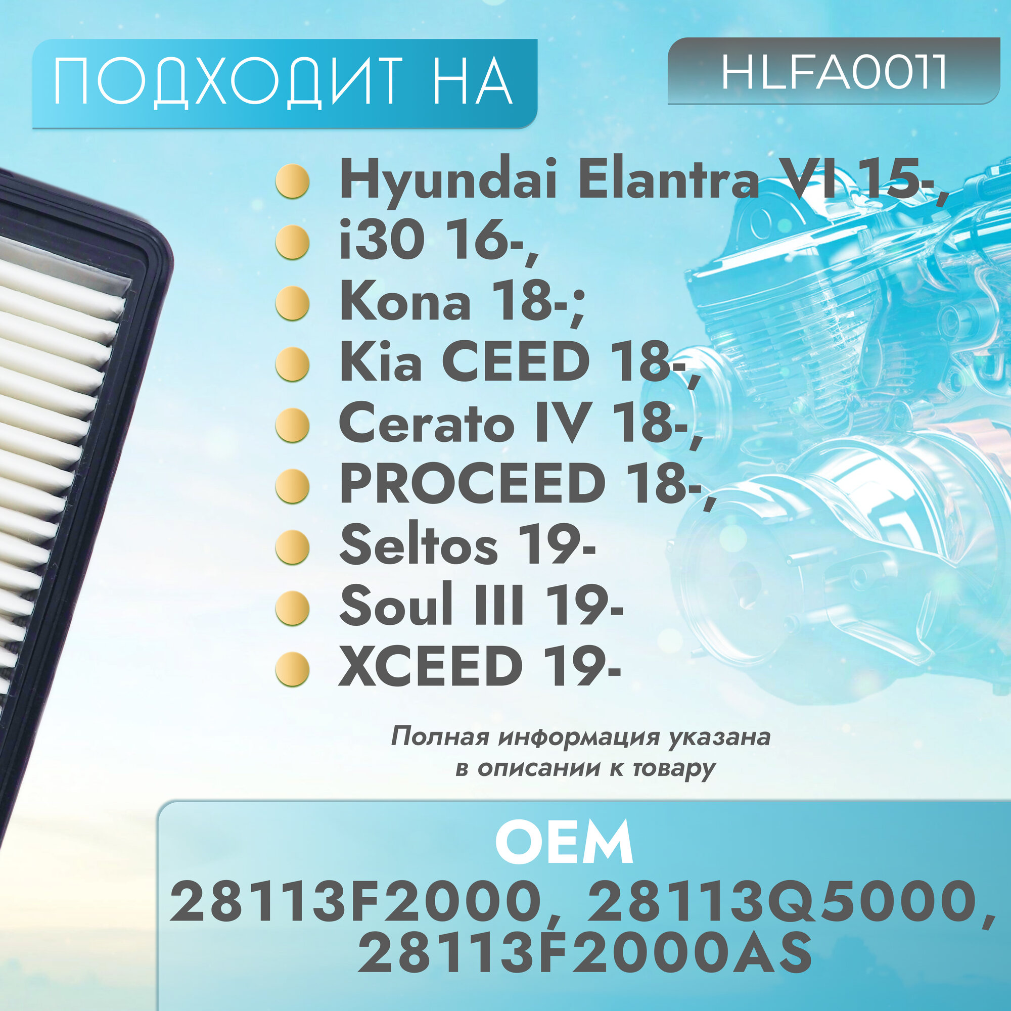 Фильтр воздушный для автомобилей Hyundai Elantra VI 15-, i30 III 16-, Kona 18-, Kia Cerato IV 18-, Soul III 19-, Ceed III 18-, ProCeed 18- интересное: