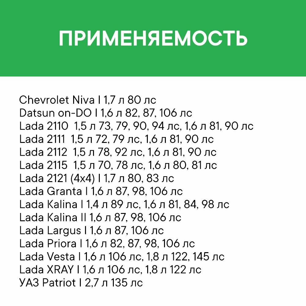 | Модель автомобиля | Chevrolet Niva / Datsun on-DO / LADA 2110 Богдан / LADA 2111 / LADA 2112 / LADA 2115 / LADA 2121 / LADA Granta / LADA Kalina / LADA Largus / LADA Priora / LADA Vesta / LADA X-RAY / УАЗ Патриот |