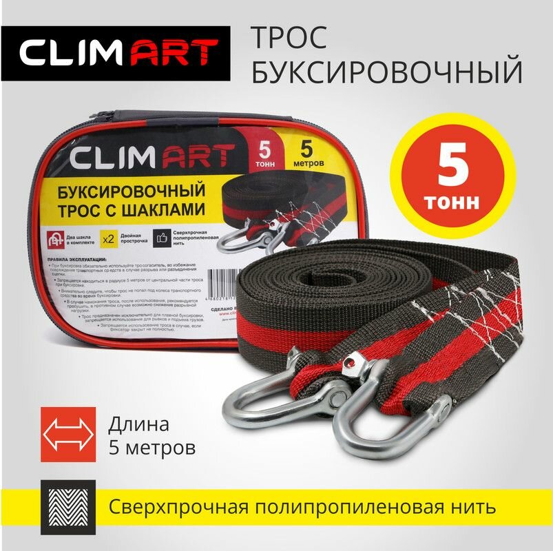 Купить Трос буксировочный с шаклами Clim Art 5т, 5м. в сумке