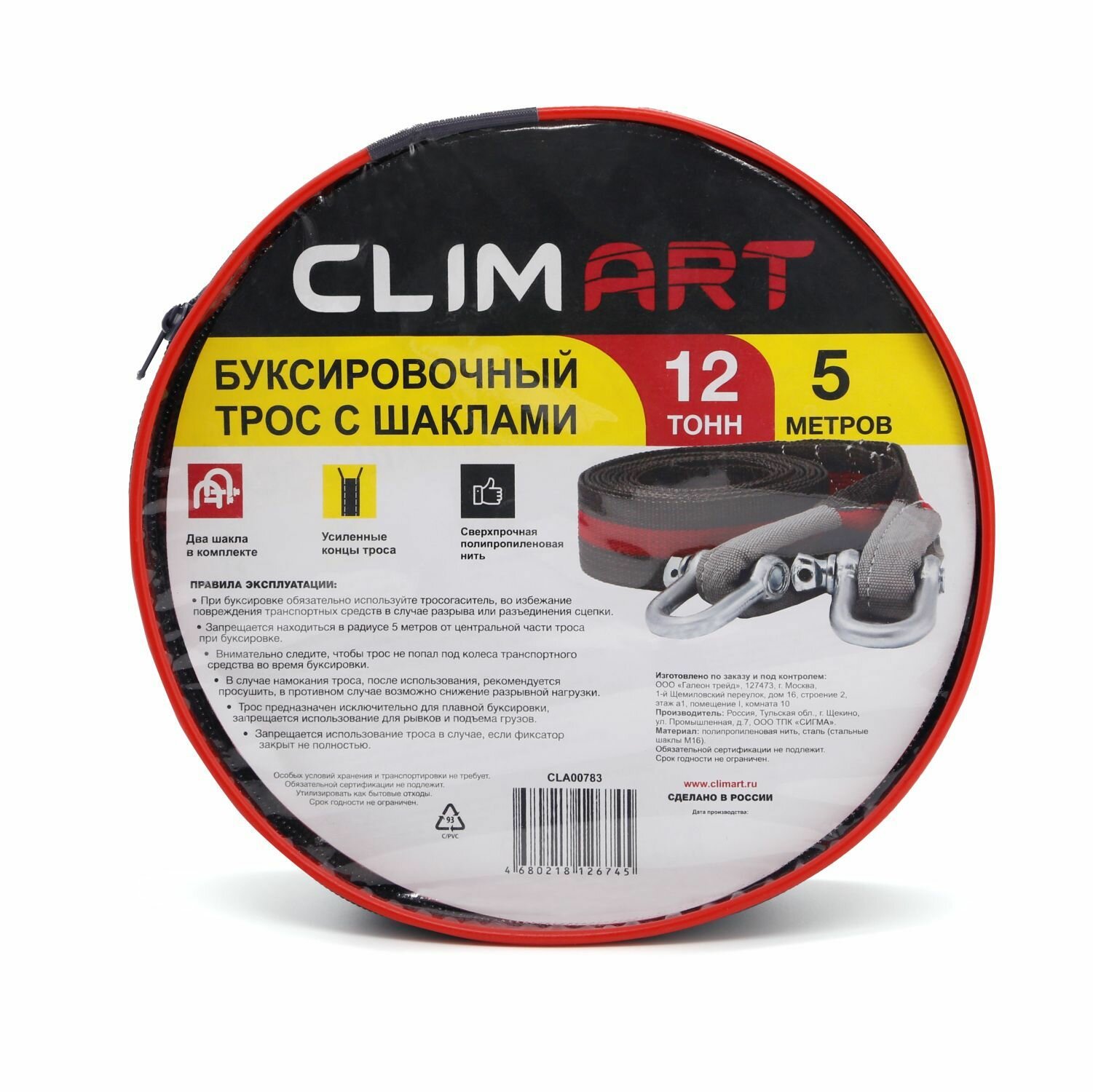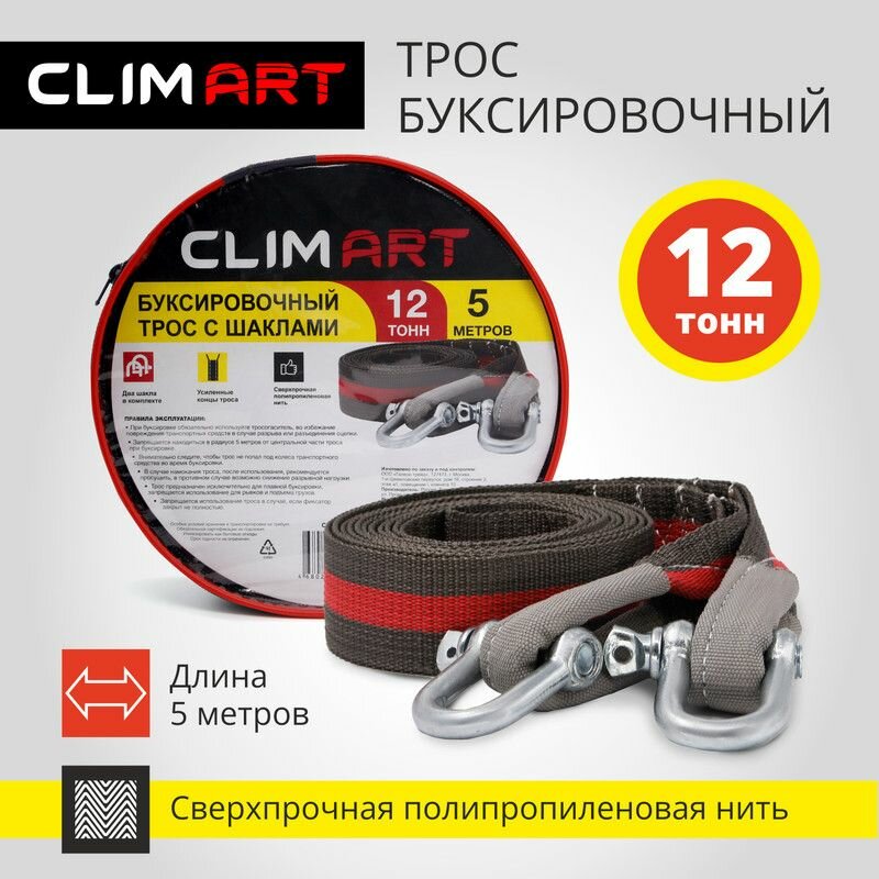 Трос буксировочный с шаклами Clim Art 12т, 5м. в сумке интересное: